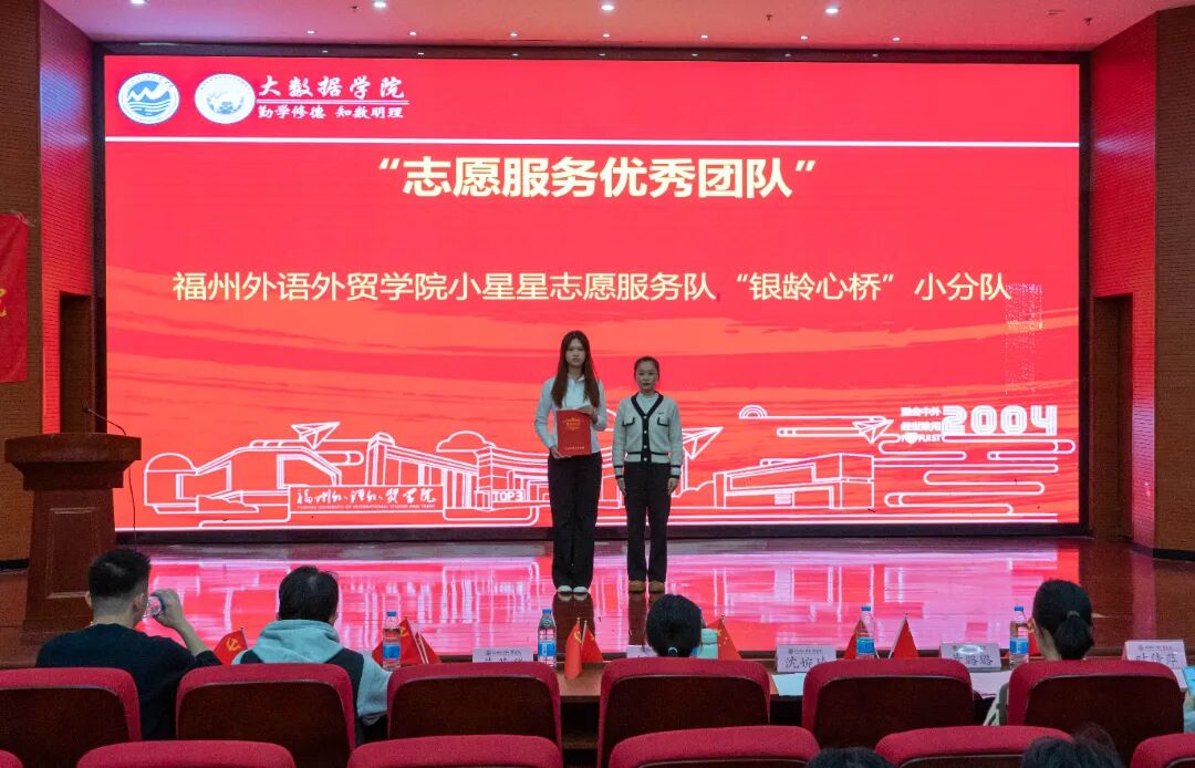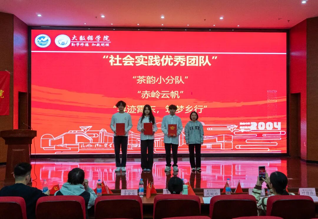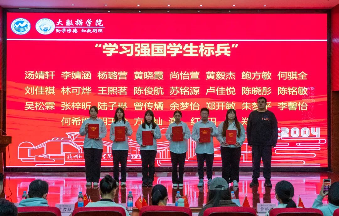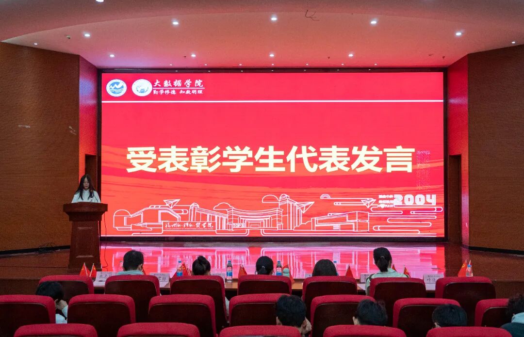 【赓续红色薪火,领数据时代之航】大数据学院顺利开展纪念一二・九运动90周年暨2025年度表彰大会 为进一步传承爱国主义精神,铭记‘一二・九’运动先驱的赤诚与热血,凝聚青年学生的爱国情怀,2025年12月8日,大数据学院于行政A楼五层学术报告厅召开“纪念一二・九运动90周年暨2025年度表彰大会”,分党委书记、副院长汪翠茹老师,团委书记、办公室副主任黄荣华老师,团委常务副书记沈婉玲老师,全体辅导员以及获奖学生,各年级专业学生代表出席本次大会。 开场舞《山河图》 奏唱国歌 分党委副书记黄荣华老师宣读《中共福州外语外贸学院大数据学院委员会关于表彰优秀共产党员、学习强国学生标兵、优秀党务工作者、先进基层党支部的决定》 表彰颁奖 朗诵《溯红色之源,言时代之志》 大数据学院办公室副主任黄荣华老师宣读《福州外语外贸学院大数据学院关于表彰2025年度优秀个人与集体的决定》 表彰颁奖 十佳联唱《铭记》 受表彰学生代表发言 信息管理与信息系统23-2班周小烨作为受表彰学生代表进行发言,向学院领导老师的辛勤培养表示衷心感谢,呼吁全体同学以获奖的先进集体和优秀个人为榜样,始终铭记“一二九”运动中爱国青年的热血担当,在学院的指引下砥砺前行,在思想上坚定信念、勤学善思,在行动上勇于实践、乐于奉献,在成长中锤炼品格、奋勇争先。秉承“融会中外,经世致用”的校训,将个人理想融入学院发展与国家建设之中,用青春的汗水浇灌梦想之花,用不懈的奋斗书写人生华章! 副院长、分党委书记汪翠茹书记讲话 汪翠茹书记在学院纪念一二・九运动 90 周年暨 2025 年度表彰大会上,向获奖师生致贺,肯定学子过去一年在思想、学业、志愿等领域的成绩及对学院发展的推动作用。为凝聚青春力量,书记提出三点希望: 第一,传承红色基因,筑牢信仰根基,做正能量的传播者。一二·九运动所展现的爱国情怀和时代担当,至今仍是我们宝贵的精神财富。受到表彰的师生,正是这种精神的当代践行者。希望大家将荣誉化为动力,坚守初心使命,在日常学习生活中以身作则,主动关心帮助同学,积极弘扬主旋律,带动身边同学共同进步,让昂扬向上的正能量充满整个校园。 第二,保持进取姿态,锤炼过硬本领,做成长路上的攀登者。荣誉是对过去的肯定,更是对未来的一份鞭策。希望大家戒骄戒躁、持续努力,在学业上刻苦钻研、夯实基础,在工作中认真负责、追求卓越。要专注于自身领域的深耕与突破,在平凡小事中磨砺意志、提升能力,努力成为同学们身边可敬、可学的榜样。 第三,强化集体观念,凝聚奋进合力,做学院发展的建设者。学院的发展离不开每一位同学的参与和贡献。希望获奖同学能充分发挥示范引领作用,积极参与学院组织的各项活动,主动为校园建设和管理建言献策。要注重团结协作,互帮互助,携手营造更加优良的学风、更加和谐的校园环境,共同助力大数据学院各项事业再上新台阶。 合唱校歌《福外赋》 合影留念 此次大会不仅是对青春奋斗的礼赞,更是对 “一二・九” 精神的传承!让我们以榜样为帆,在数据浪潮中继续乘风破浪,续写属于大数据学院的热血篇章。