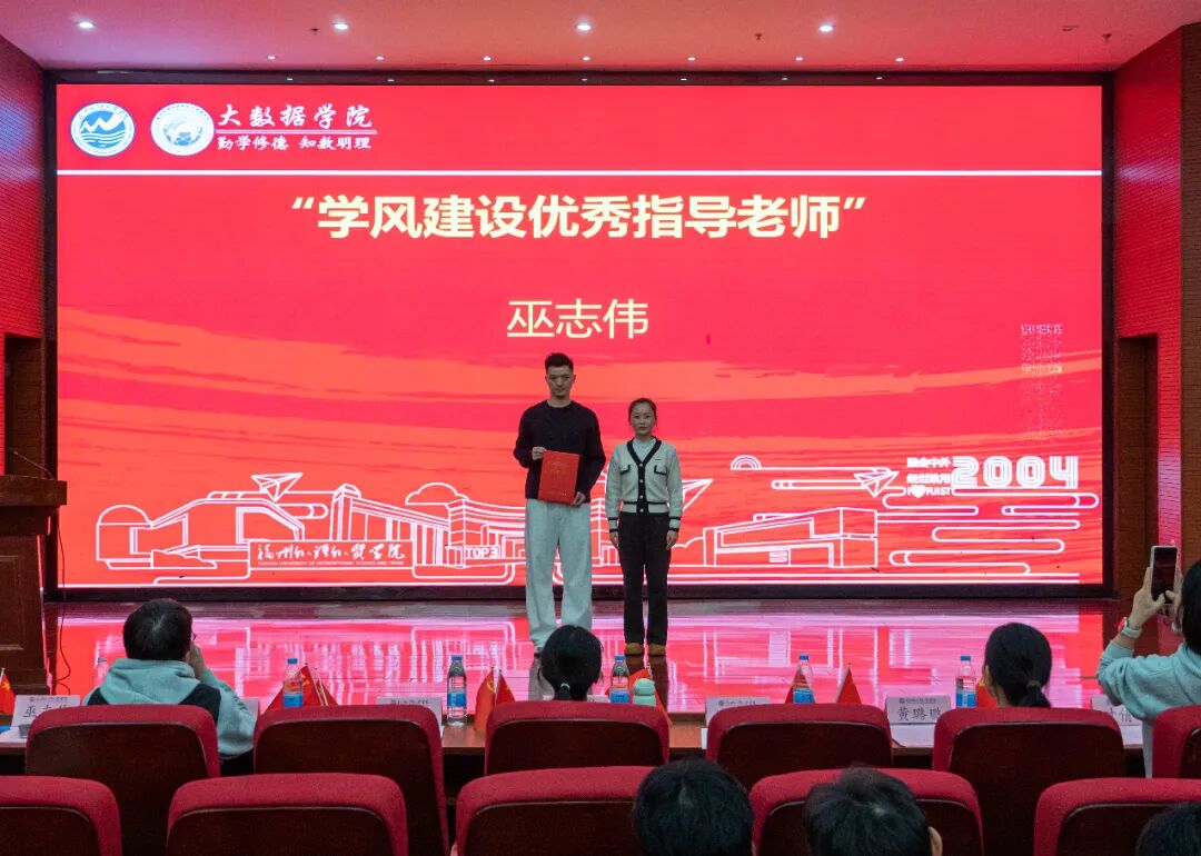 大数据学院办公室副主任黄荣华老师宣读《福州外语外贸学院大数据学院关于表彰2025年度优秀个人与集体的决定》