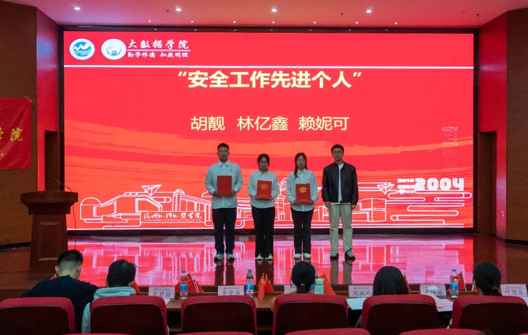 第三,强化集体观念,凝聚奋进合力,做学院发展的建设者。学院的发展离不开每一位同学的参与和贡献。希望获奖同学能充分发挥示范引领作用,积极参与学院组织的各项活动,主动为校园建设和管理建言献策。要注重团结协作,互帮互助,携手营造更加优良的学风、更加和谐的校园环境,共同助力大数据学院各项事业再上新台阶。