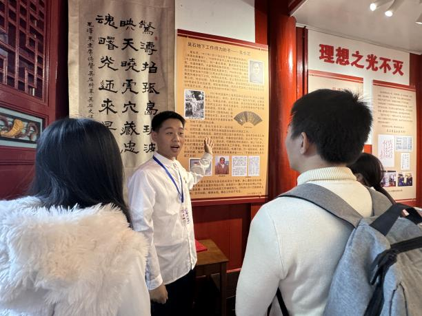 上一堂“行走的思政课”!11月21日下午,大数据学院“数传薪火”宣讲团走进吴石故居与纪念室,将宣讲课堂搬到历史现场。围绕“立报国强国大志向,做挺膺担当奋斗者”主题,宣讲团成员在追忆先辈峥嵘岁月中,引领同学们深刻领会二十届四中全会精神,激励大家将个人理想融入时代使命,争做挺膺担当的奋斗先锋。