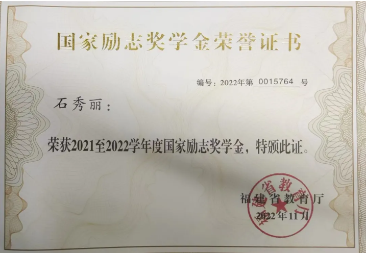 2021-2022学年 福建省教育厅,“国家励志奖学金”