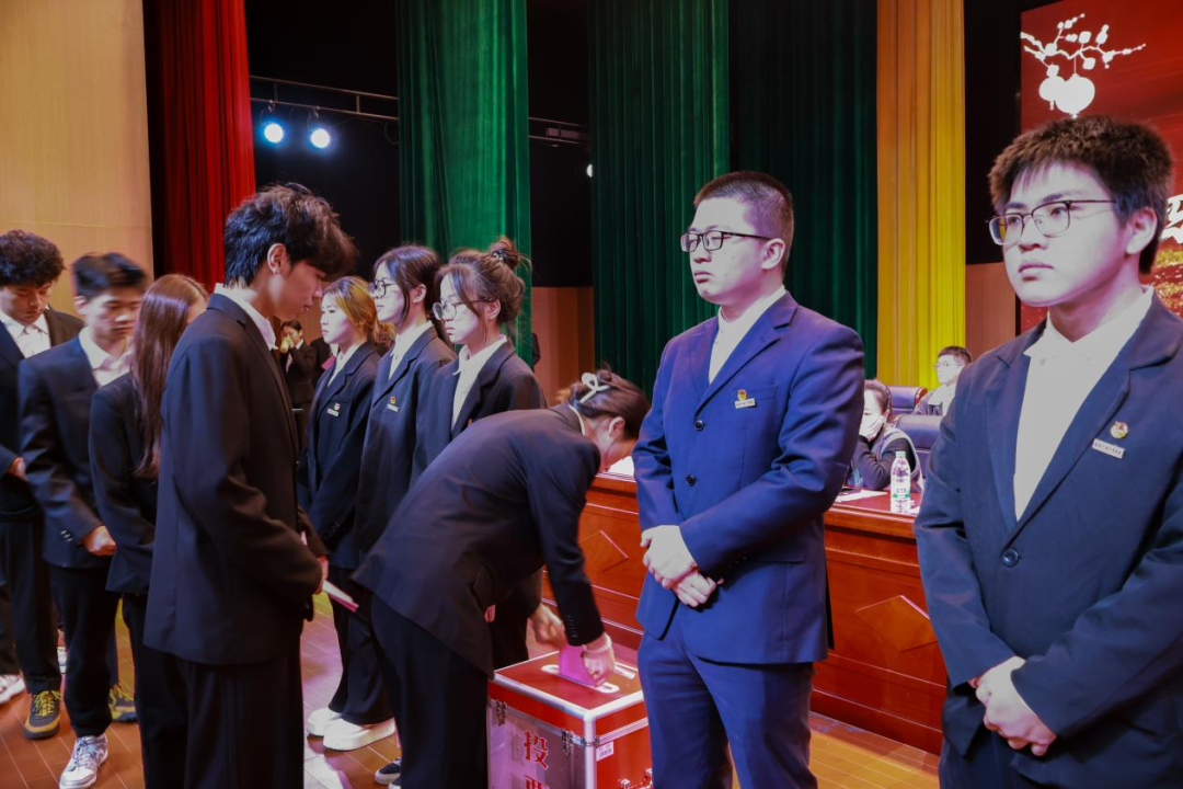 会议通过大会选举总监票人、监票人和总计票人、计票人建议名单;由主持人赵晨曦宣读福州外语外贸学院大数据学院第四次学生代表大会常任代表候选人名单、第四届学生委员会主席团候选人名单以及第四届学生委员会主席团名单。