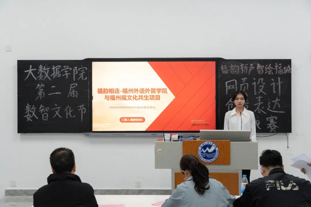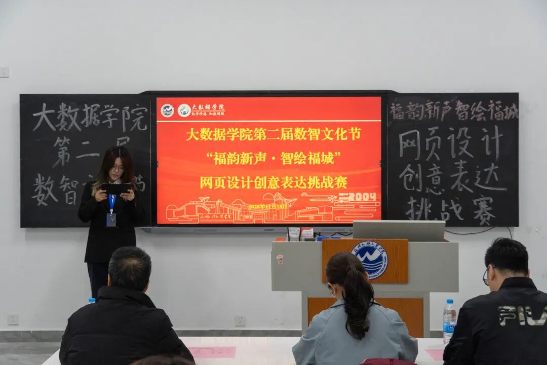 【数智引航 创新未来】大数据学院第二届数智文化节之“福韵新声·智绘福城”网页设计创意表达挑战赛圆满结束! 为了以数字技术激活传统福文化的生命力,搭建校园智慧与城市文脉的对话桥梁,我院第二届数智文化节之“福韵新声·智绘福城”网页设计创意表达挑战赛于11月18日在长乐校区人文楼2-304拉开帷幕。本次大赛特邀陈章斌老师、郑逸凡老师、王磊老师担任评委,为赛事提供专业指导。 参赛选手作品展示 从容应队 铁道游记队 你说的都队 春山可望队 别和我作队 南波万队 福韵相连队 现场答辩环节 答辩现场氛围在评委与选手的问答中升温,评委围绕“网页效果实现逻辑”“核心技术与软件应用”“后续优化方向”关键问题深入交流。从代码细节拆解、设计适配建议到优化路径探讨。既让现场氛围热烈高涨,也助力选手精准把握作品短板明确了后续的改进方向。 获奖情况 经过各队的成果展示与评委老师的专业点评,大数据学院第二届数智文化节之“福韵新声·智绘福城”网页设计创意表达挑战赛获奖名单如下: 一等奖: 南波万队 二等奖: 你说的都队 别和我作队 三等奖: 从容应队 铁道游记队 福韵相连队 优秀奖: 春山可望队 总结点评 在本次大数据学院第二届数智文化节之“福韵新声·智绘福城”网页设计创意表达挑战赛的点评环节中,陈章斌老师对同学们作品彰显的创新探索精神予以高度认可。老师指出参赛作品基础扎实,但静态呈现为主的表现形式仍有优化空间,勉励大家深耕动态化、交互化设计,并着重强调,需强化理论与实践转化效能。 大数据学院第二届数智文化节“福韵新声 智慧福城”网页设计挑战赛,充分彰显数院学子的创意才情与专业功底。参赛选手以技术为基、创意为核,推动“福”文化与福城特色在数字化表达中焕发新活力。愿同学们秉持创新执着与文化热忱,深耕专业领域,续写奋进华章。 大数据学院办公室 2025年11月23日