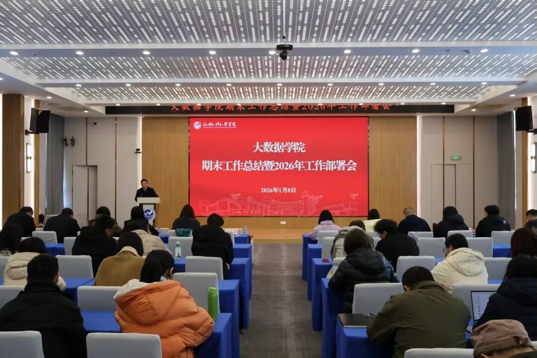 【数院动态】我院召开期末工作总结暨2026年工作部署大会 近日,我院在行政A楼15楼会议室召开全体教职工大会,全面总结学院2025年工作成绩,并部署2026年重点工作任务。学院党政领导班子,各系(副)主任,产业学院副院长,办公室负责同志及全体教职工参加会议。会议由陈震院长主持。 首先,叶福兰副院长就2025年教学工作作了全面总结,并对2026年度核心工作提出具体要求。她指出,一是聚焦教学质量管理与期末工作,审核评估的核心目标是促进教学质量持续提升,同时要求全体教师严格执行考试规范与成绩评定标准,加强毕业论文及毕业实习的全过程监管;二是寒假期间要重点推进实验室建设、课程体系优化及教学研究能力提升工作;三是下学期教学重点将聚焦于专业实验室升级、特色专业培育、新增专业申报、硕士点筹建以及深化产教融合实践等方面。 接着,汪翠茹书记对2025年学生工作作了全面总结,并围绕2026年度核心工作与寒假期间重点任务作出部署。她强调,首要任务是开展寒假促就业暖心行动——就业是民生之本,寒假正是促就业的关键窗口期,要求全体教师积极推荐就业岗位及合作单位,全力助力毕业生就业;此外,班导师与论文导师要在论文指导过程中同步开展就业关怀与指导,重点关注就业困难学生。二是着重强调师生离校前及学生假期的安全提醒工作,要求全院师生离校前务必检查办公室、宿舍的水电、门窗及设备安全,切实做好防火防盗措施;此外,辅导员要密切关注学生假期安全,尤其要重视毕业生实习实践安全,进一步强化网络与意识形态安全教育。三是强调师德师风的重要性,引导全体教职工增强廉洁自律意识,筑牢拒腐防变思想防线,要求全体教师要以“学高为师、身正为范”为准则;四是对学校工会部署的寒假考察活动作了详细讲解与动员。 随后,黄建琼助理就2025年科研工作作了全面总结,并对2026年度重点工作作出部署。她强调,一是教学与科研需并重,科研成果要反哺教学;二是电子信息硕士点申报是来年的核心工作,全体教师需聚焦人工智能和大数据工程与技术两大方向;三是2026年将启动发明专利申报工作,统筹推进专利申报与科技奖培育;四是重点培育数据科学与智能计算重点实验室、低空经济工程研究中心两大平台。 最后,陈震院长作总结讲话。他用详实数据盘点过去一年人才、教学、科研、服务四线并进的全貌,清晰勾勒2026年工作思路、重点任务和关键举措。他指出,过去一年,学院圆满完成审核评估工作,在肯定成绩的同时,他也直面学院发展中的短板,明确指出学科特色不够鲜明、人才梯队结构有待优化、科研成果转化效率偏低、国际化水平有待提升等问题,并强调2026年是“十五五”开局之年,2026年将聚焦“四个突破、一个合格”的核心任务:一是突破人才培养瓶颈,深化“三全育人”改革,推进新增硕士点申报与交叉学科专业建设;二是突破科研创新壁垒,推行“揭榜挂帅”机制,推动科研平台提档升级;三是突破人才引育难点,实施“人才强院”计划,优化教师评价体系与培养机制;四是突破国际化发展瓶颈,拓展“一带一路”高校合作,提升学术国际影响力;五是坚持科研与教学并重,引导教师成长为兼具科研能力与教学水平的合格教育者。 蓝图已绘就,奋斗正当时。期间,学院领导向全体教职工送上新春的美好祝愿。本次大会既是对过去一年度工作的系统总结,也是对新一年工作的动员与部署;全体教职工将以此次会议为契机,进一步统一思想、凝聚共识,以更加饱满的热情、更加扎实的作风,共同谱写学院高质量发展的新篇章。 大数据学院办公室 2026年1月20日