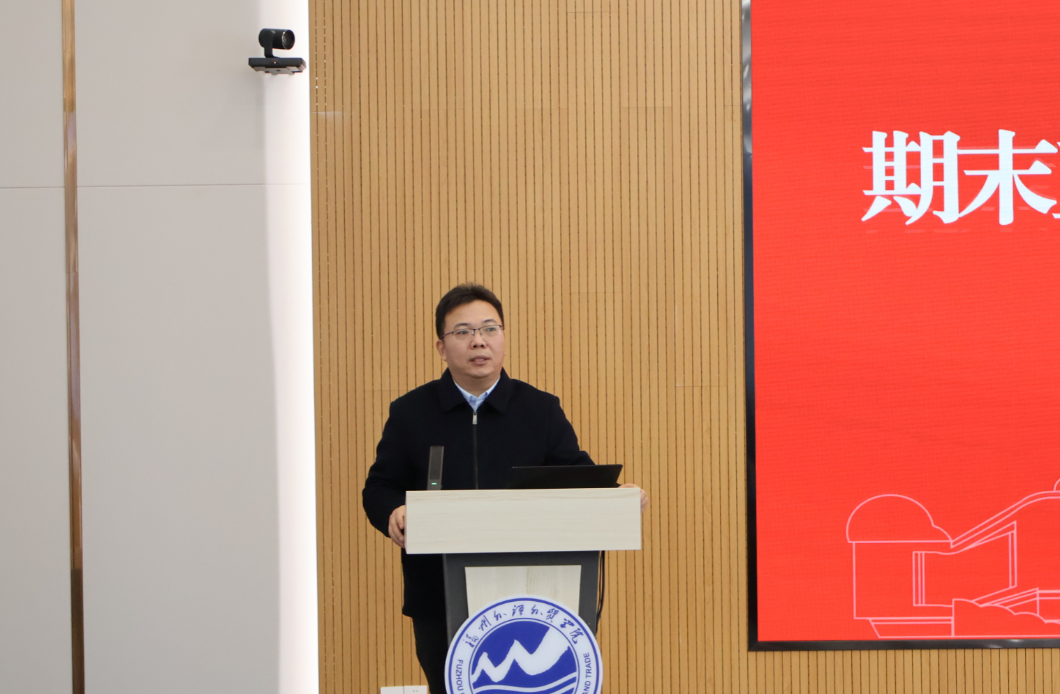 近日,我院在行政A楼15楼会议室召开全体教职工大会,全面总结学院2025年工作成绩,并部署2026年重点工作任务。学院党政领导班子,各系(副)主任,产业学院副院长,办公室负责同志及全体教职工参加会议。会议由陈震院长主持。