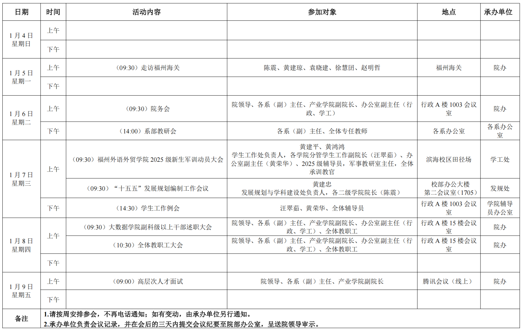 大数据学院 2025-2026 学年第一学期第 19 周活动安排表