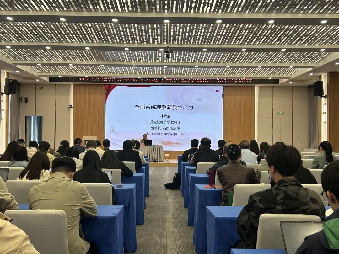 培训会上,林鹭航副教授以“全面系统理解新质生产力”为主题,系统阐释了习近平经济思想的核心要义、精神实质、丰富内涵与实践要求,重点解读了新质生产力、高质量发展等重大理论和实践问题。结合福建发展实际,林鹭航副教授深入分析了我省发展新质生产力的机遇与挑战,系统总结了沿海发达省市的先进经验,并立足福建省发展实践与典型经济特征,阐释了福建省在特色产业集聚、科技创新驱动、民营经济活力等方面的独特优势,为课程教学融入区域实践提供了鲜活素材。