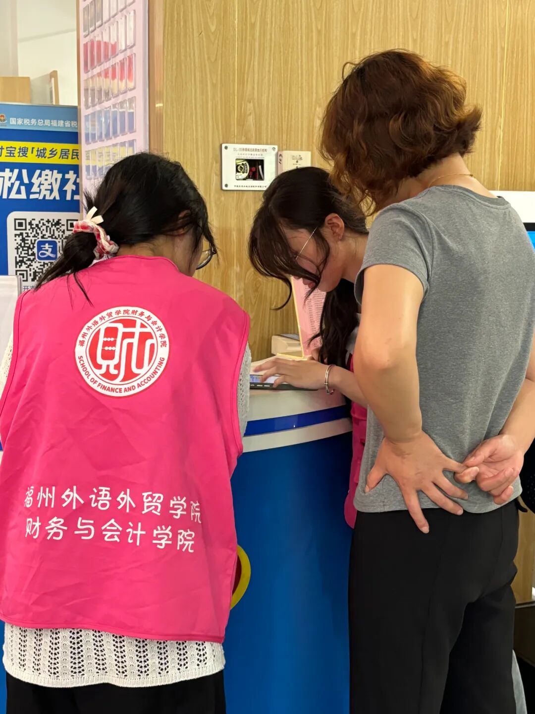 从初入办税场景的 “懵懵懂懂”,到熟练协助纳税人取号咨询、游刃有余对接业务的 “驾轻就熟”;从实践初期面对税务流程的生疏局促,到主动与工作人员交流请教、精准回应纳税人需求的从容自信,福州外语外贸学院 “税月同兴队” 成员在实践中完成了从 “理论学习者” 到 “实务服务者” 的蜕变。