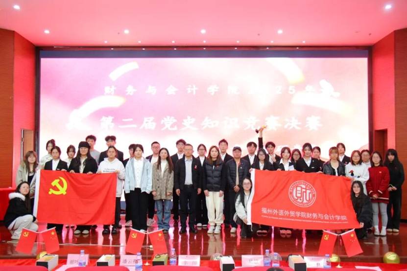 为推动党史学习教育走深走实,进一步激发青年学子爱党爱国热情,12月16日,福州外语外贸学院财务与会计学院第二届党史知识竞赛决赛在行政A五楼学术报告厅隆重举行。经过初赛的层层筛选,六支实力强劲的队伍脱颖而出,齐聚决赛现场,以赛会友、以智竞史,在紧张激烈的比拼中传承红色基因,彰显青春担当。