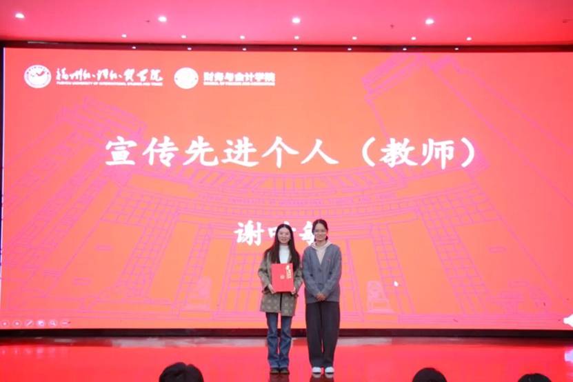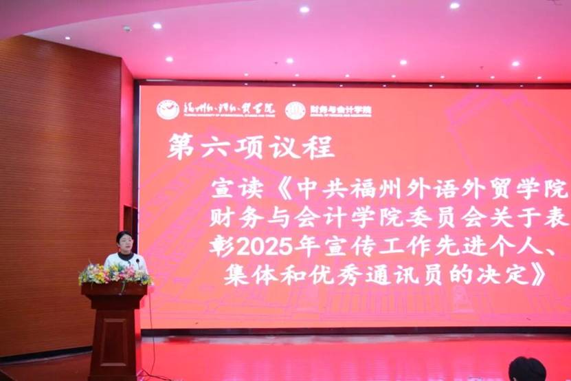 团委副书记刘佳佳宣读《中共福州外语外贸学院财务与会计学院委员会关于表彰2025年宣传工作先进个人,集体和优秀通讯员的决定》