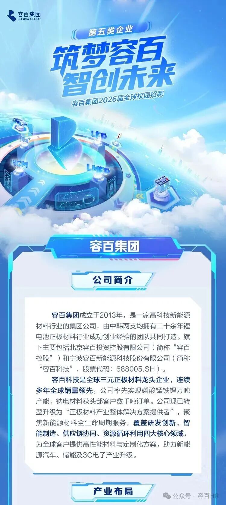 【2025招聘信息】容百集团2026届全球校园招聘(专业不限)
