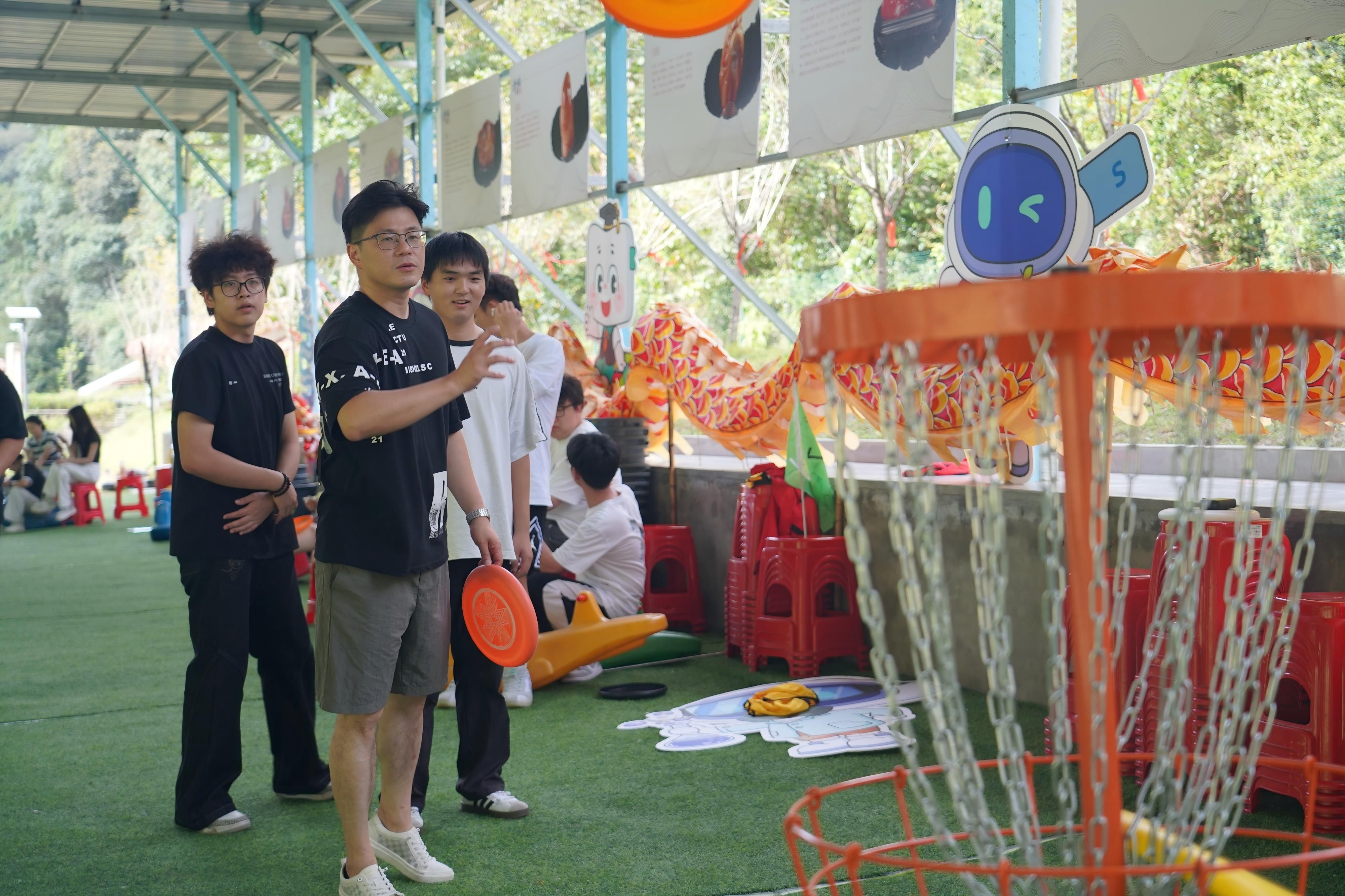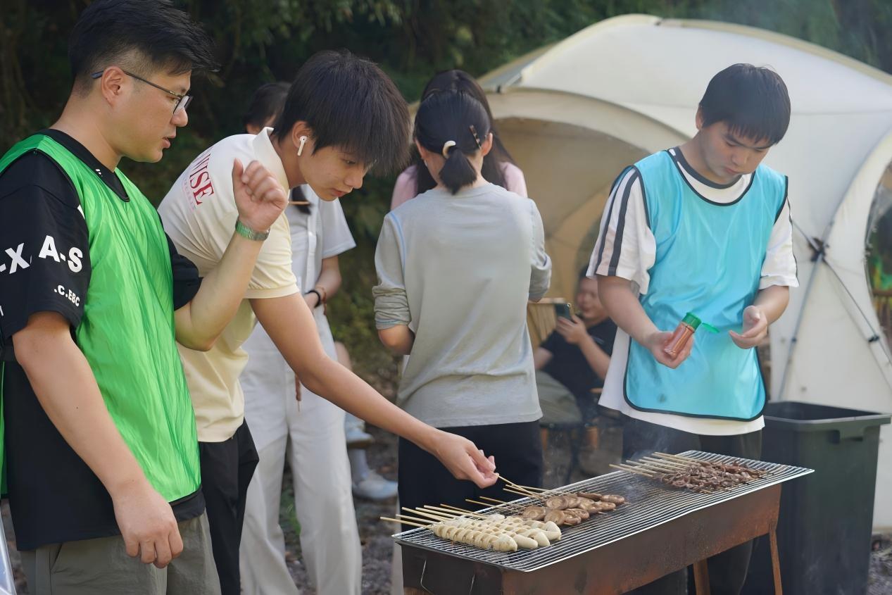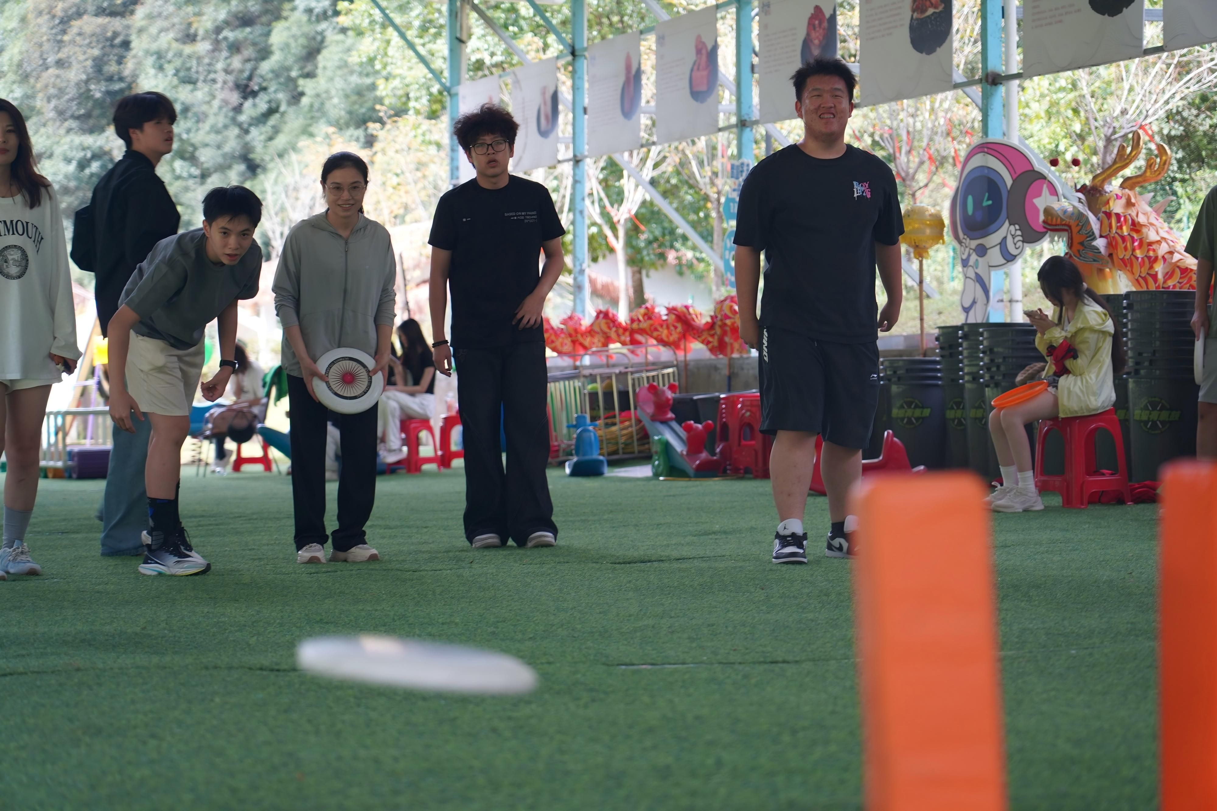 本次飞云峡户外拓展活动精心设计了将体能训练、团队协作与跨文化交流相结合的项目方案。专业团建老师根据海外教育学院学生的特点,开发了系列团队建设任务。活动伊始,专业团建老师通过一系列破冰游戏,打破学生之间的隔阂,建立相互信任的基础。轻松欢快的活动营造出团队快乐和谐的氛围,为全天的活动奠定了良好基础。随着活动的深入,全球漫游团队挑战成为首个高潮。学生被随机分成若干小组,每组由一名老师或助教协助。这一环节要求团队成员在指定区域内协作完成多项任务。飞盘竞技项目尤其受到学生欢迎。这一项目不仅考验个人技能,更强调团队间的默契配合。学生在投掷与接盘的过程中,锻炼了身体协调性,也提升了团队协作意识。户外烧烤活动则成为跨文化交流的绝佳平台。学生们自己动手制作美食,分享各自国家的饮食文化。在轻松自然的氛围中,不同文化背景的学生畅所欲言,增进了相互理解。