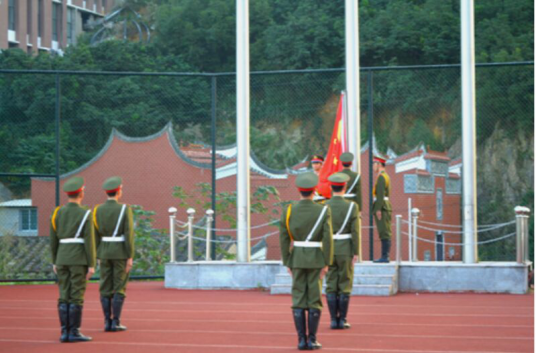 仪式开始,国旗护卫队昂首挺胸,迈着铿锵有力的步伐向旗台前进,国歌响起,红旗飘扬,全体师生神情肃然。礼毕,学生代表2016级法语专业白丽玉同学发表国旗下的讲话,倡导同学们将爱国情操融入到日常学习生活的点滴,坚持践行“三自管理”,认真复习、诚信考试,争取在期末考试中获得优异的成绩。工作室一直重视学生行为规范、价值取向、服务意识等软文化内涵建设,积极创建良好育人文化环境。