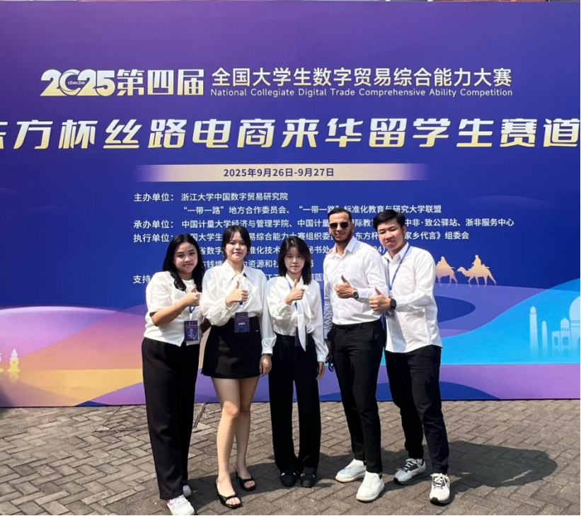 2025年9月27日,第四届全国大学生数字贸易综合能力大赛丝路电商来华留学生创新创业大赛暨东方杯“我为家乡代言”(国际组)全国总决赛在中国计量大学圆满落幕。本次大赛由浙江大学中国数字贸易研究院、“一带一路”地方合作委员会、“一带一路”标准化教育与研究大学联盟联合主办。赛事以“东方神韵 创新传承”为核心主题,借助留学生的跨文化视角,聚焦中国本土文化遗产与“一带一路”沿线地区文明的交流互鉴,探索数字技术赋能文化传承的创新路径。