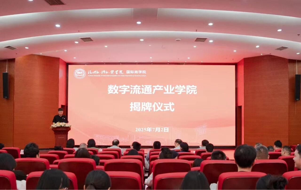 7月2日上午,国际商学院数字流通产业学院揭牌仪式在学术报告厅隆重举行。福建省电子商务促进会副秘书长陈秀敏、福州市物流与供应链协会专职副会长任祖明、执行校长黄建平教授、20多家企业高层代表、教务处、产教融合中心、国际商学院等各级领导、国际商学院全体教师和学生代表出席了本次活动。揭牌仪式由国际商学院院长助理、数字流通产业学院院长林国超主持。