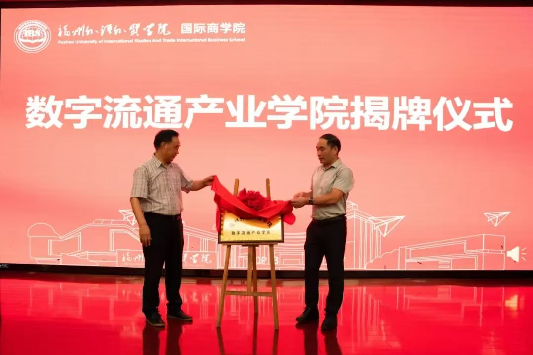 签约仪式后,国际商学院院长刘恩专与福建省电子商务促进会副秘书长陈秀敏共同为产业学院揭牌,数字流通产业学院正式挂牌成立,现场掌声雷动。