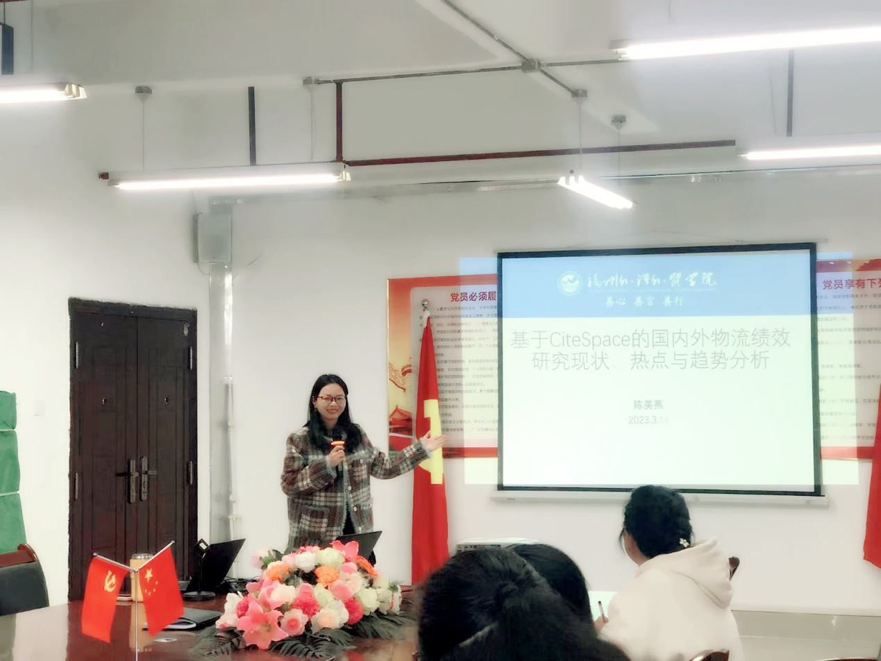2023年3月14日我校经管学院教师陈美燕做“基于CiteSpace的国内外物流绩效研究现状、热点与趋势分析”专题讲座,地点为行政B楼606会议室。参加者为经管学院教师和学生。