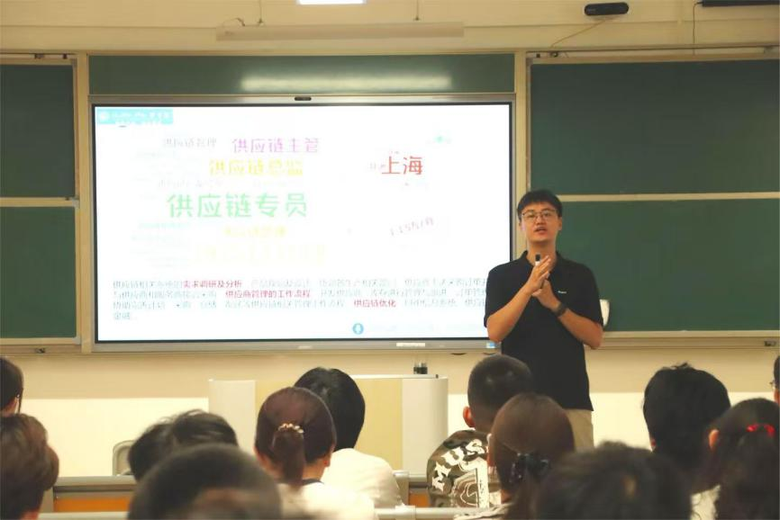行业分享会上,林智勇总监以“数据孤岛”到“AI互联”供应链数字化的转型之路的为主题,结合自身丰富的业务实战经验,从数字供应链发展背景与行业现状、供应链数字化的关键技术体系、供应链数字化的发展挑战与应对策略等方面为同学们深度解析供应链行业前沿发展动态及未来发展趋势。林总监的讲解不仅帮助大家深刻理解供应链数字化转型的本质,更为接下来的专业学习找准方向,也为未来的职业规划绘制了清晰的蓝图。