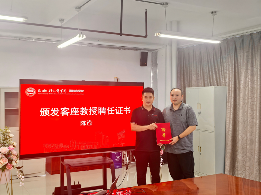 仪式现场,陈宏伟书记还为陈滢经理颁发了客座教授聘任证书,正式聘请其为学院教学实践指导专家。未来,陈滢将参与学院实践课程设计、学生职业发展指导及校企合作项目评审等工作,进一步推动校企资源的深度融合。