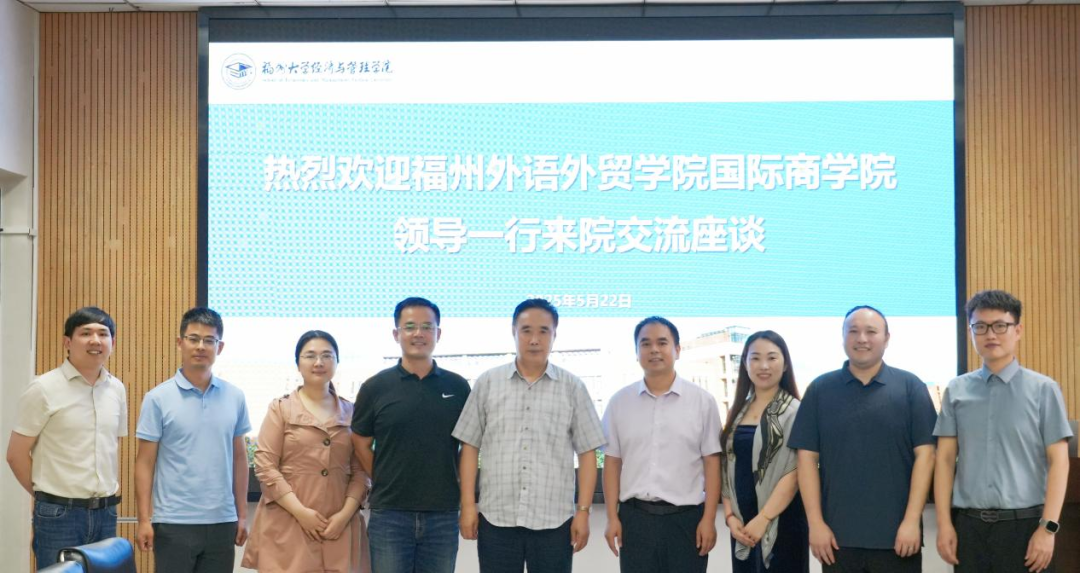 5月22日,国际商学院院长刘恩专、校科研处副处长黄丽华、国际商学院副院长、分党委书记陈宏伟、国际商学院副院长李折周以及国际商学院办公室副主任林竞文一行赴福州大学经济与管理学院,就国际商务学科硕士研究生联合培养项目开展深度交流。福州大学经济与管理学院副院长吴鹏、院长助理李德彪等出席座谈,双方围绕人才培养、学科共建等议题展开务实研讨。
