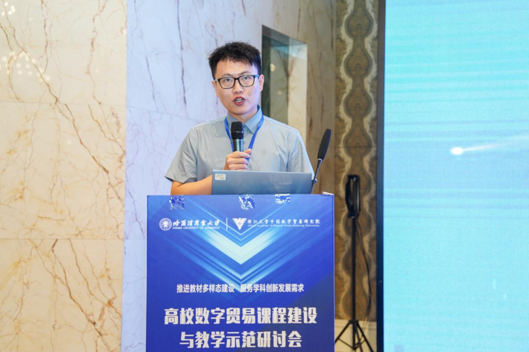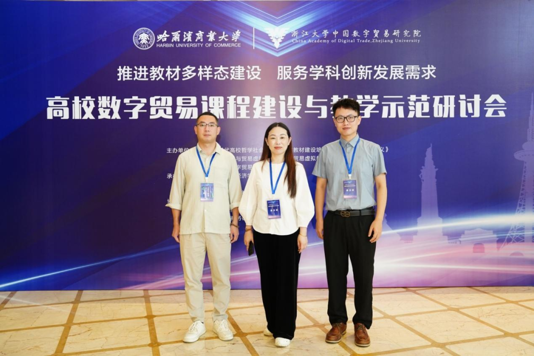 7月19日,为积极适应数字经济发展趋势、推动教育教学改革,我校科研处副处长黄丽华、我院副院长李折周以及国际经济与贸易系系主任陈尘一行三人,奔赴哈尔滨商业大学,参加由浙江大学中国数字贸易研究院主办的“高校数字贸易课程建设与教学示范研讨会”。此次研讨会,作为数字贸易教育领域的重要交流平台,聚焦数字贸易前沿发展与高校人才培养,吸引了国内300余位相关领域的专家学者齐聚一堂,共同探讨行业发展趋势与教育创新路径。