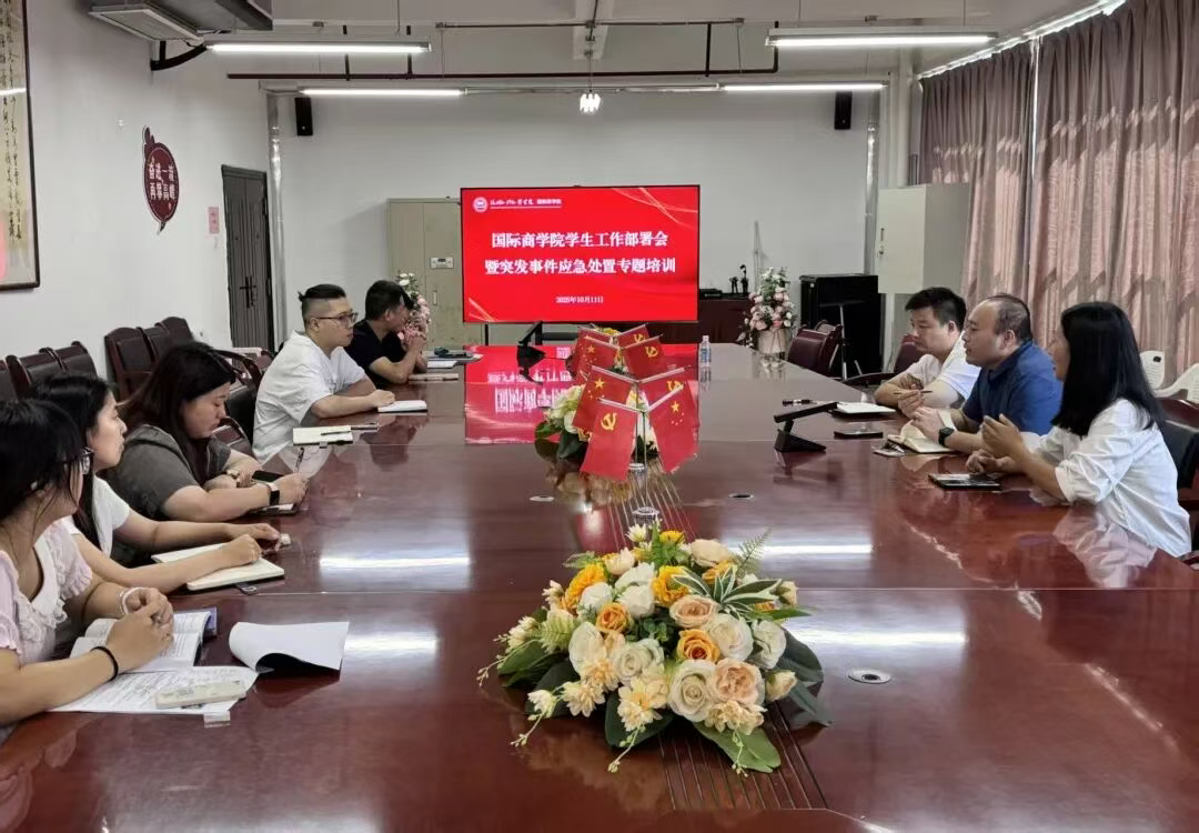 10月11日,国际商学院举行学生工作部署会暨突发事件应急处置专题培训,学院党委书记陈宏伟、办公室副主任魏强及全体辅导员参会。会议在部署常规学生工作、为教育教学审核评估指明方向的同时,重点通过实战化培训强化辅导员的应急事件处置能力,旨在打造一支能打硬仗的学工队伍,为学子成长和校园安全提供坚实保障。