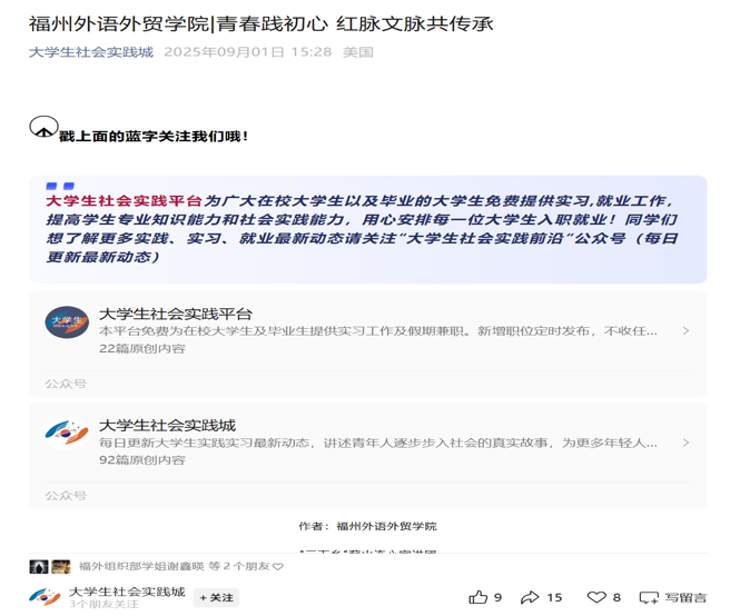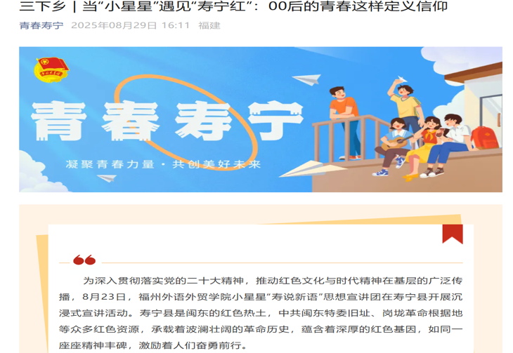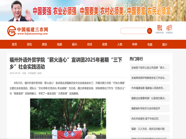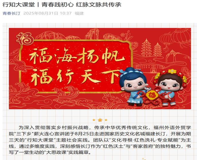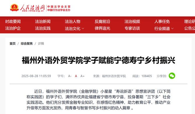 为深入学习宣传贯彻习近平总书记关于青年工作的重要思想,引导和帮助广大青年学生上好与现实相结合的“大思政课”,在社会课堂中“受教育、长才干、作贡献”,2025年暑期,福州外语外贸学院金融学院以“青春为中国式现代化挺膺担当”为主题,精心组织开展大学生暑期“三下乡”社会实践活动。
