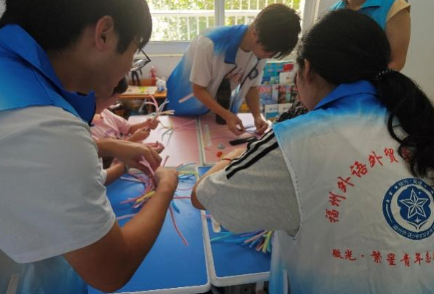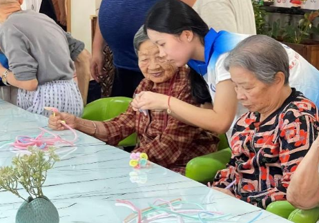 “微光繁星‘红色金融’实践团”在惠安县农业银行网点设立“移动柜台”,用闽南方言为居民讲解防诈知识;在迎津社区养老中心,教老人编织手环、传授防诈口诀;在长乐社会福利中心,带领孩子们制作反诈手链,将金融启蒙融入趣味手工。