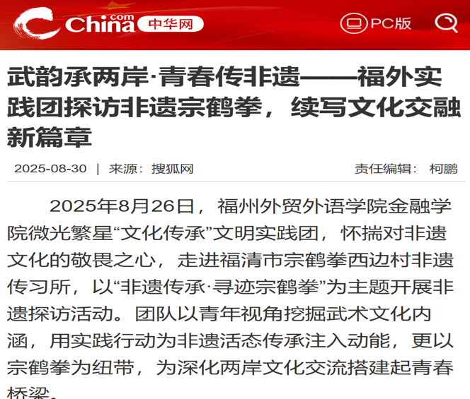 为深入践行习近平总书记关于文化遗产保护传承的重要指示精神,微光繁星"文化传承"实践团沿着总书记"保护文物功在当代、利在千秋"的指引,赴福清市开展文化寻根之旅,在宗鹤拳传习所感受"刚柔并济"的武术魂,在罗汉里游击根据地旧址体悟"红旗不倒"的革命志,在词明线戏传习所触摸提线木偶的非遗韵,用镜头记录200余分钟素材,整理万字访谈实录。