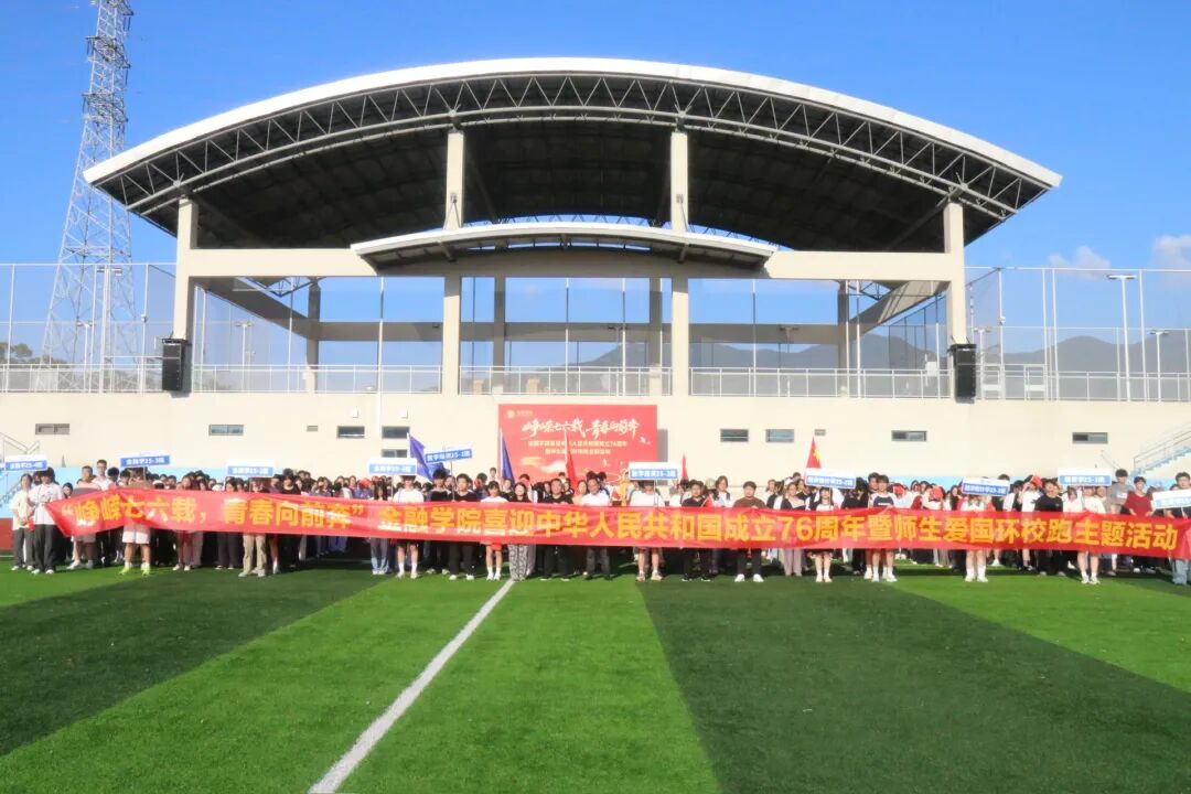为隆重庆祝中华人民共和国成立76周年,深入推进爱国主义教育,激励青年学子赓续奋斗精神、勇担时代使命,9月29日清晨7时,金融学院庄严举行“峥嵘七六载,青春向前奔”喜迎中华人民共和国成立76周年暨师生爱国环校跑主题教育活动。学院党委书记、副院长林业铖副教授,院办副主任、团委书记刘栩彬,全体辅导员及2025级全体新生齐聚滨海校区,以奔跑致敬伟大时代,以脚步书写青春担当。