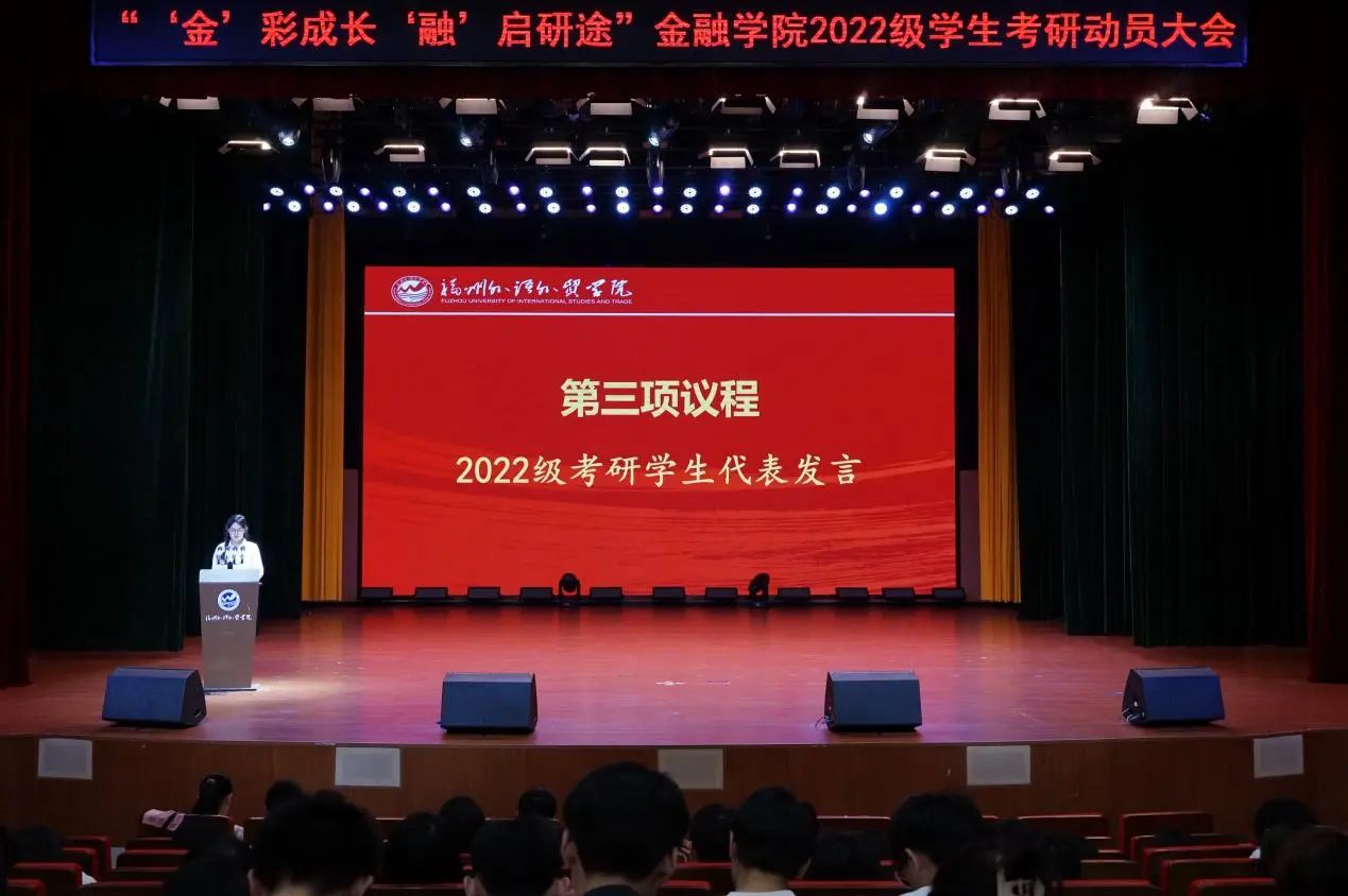 为激发学生的考研热情,明确考研目标,掌握相关考研技巧,金融学院于10月8日在博雅音乐厅举办了2022级学生考研动员大会。