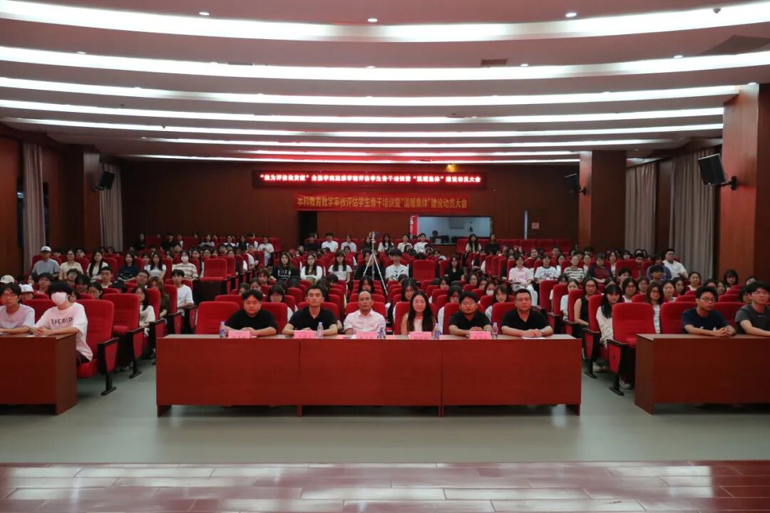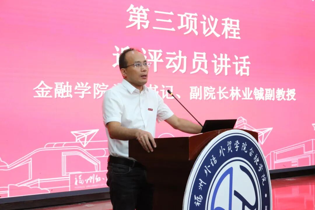 为迎接教育部新一轮本科教育教学审核评估,凝聚全院学生共识、激发迎评热情,我院于10月16日晚在长乐校区学术报告厅召开以“我为评估做贡献”为主题的金融学院迎接审核评估学生骨干培训暨“温暖集体”建设动员大会。学院党委书记、副院长林业铖,全体辅导员、长乐校区各年级学生骨干现场参加大会,滨海校区全体新生以线上直播方式观看学习。办公室副主任、团委书记刘栩彬主持会议。