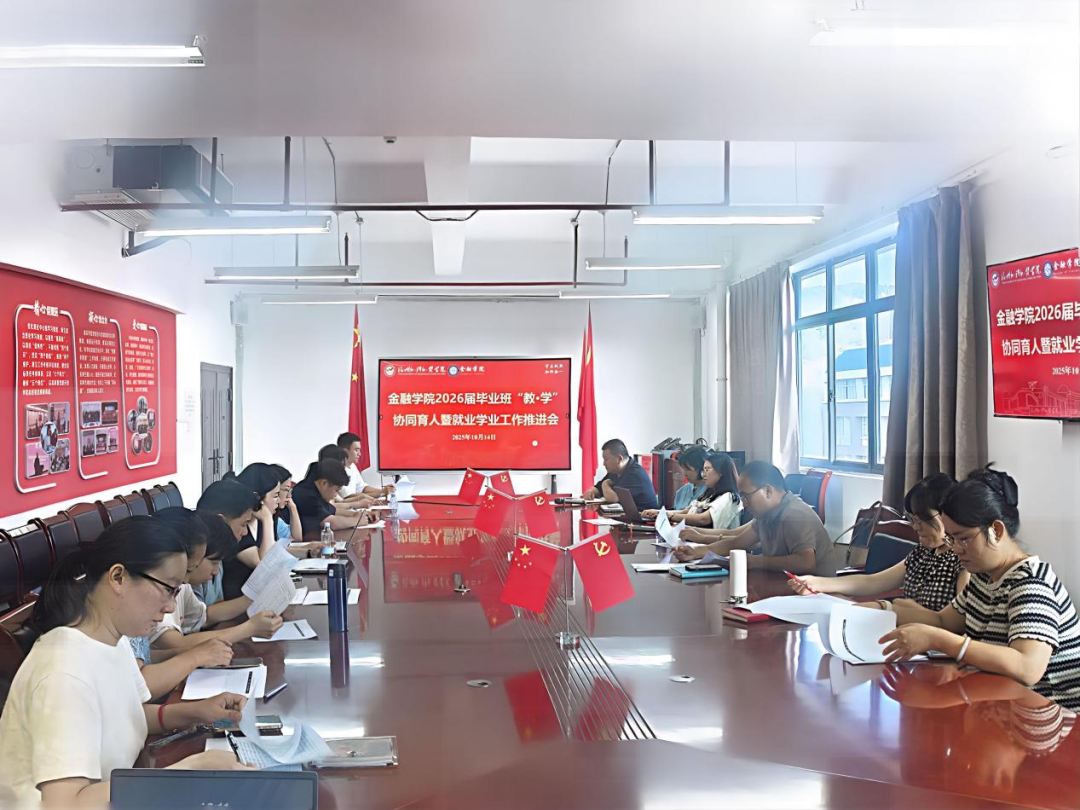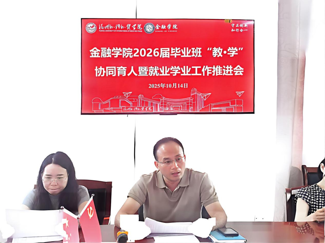 为扎实推进学院2026届毕业生就业工作,进一步强化协同育人意识,10月14日,金融学院在行政B楼806会议室召开2026届毕业班“教·学”协同育人暨就业学业工作推进会。学院党委书记、副院长林业铖,副院长李莉、院长助理张丽及各系主任,院办、团委负责人,2022级、2024级(专升本)班导师、辅导员,教学秘书参加会议。会议由办公室副主任文武主持。
