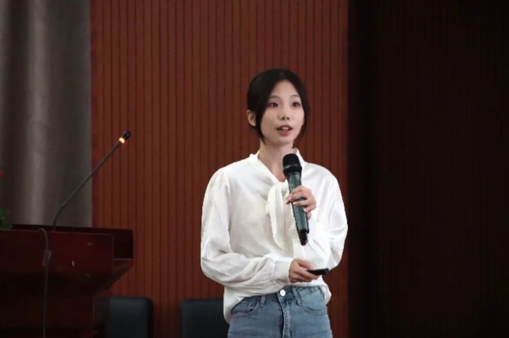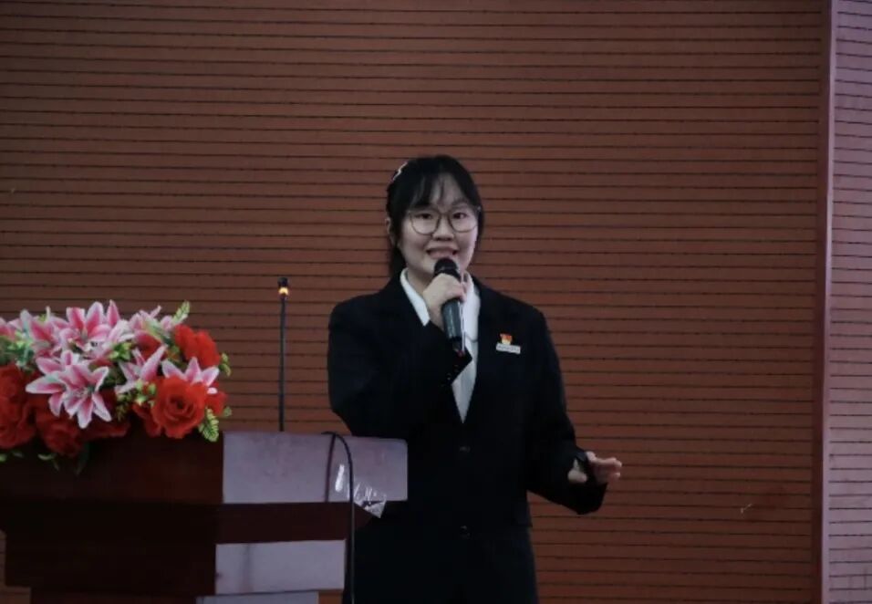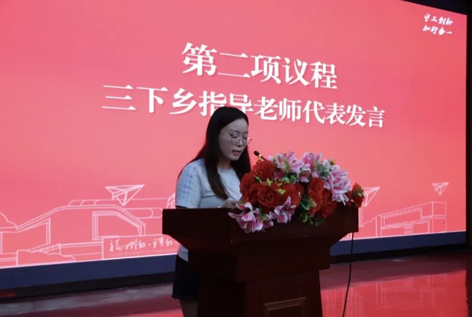 郑姗姗老师作为三下乡队伍的指导老师进行发言,分享“三下乡”社会实践的意义和价值,肯定同学们在实践中的努力和收获,鼓励大家将理论与实践相结合,为国家发展和社会进步贡献力量。