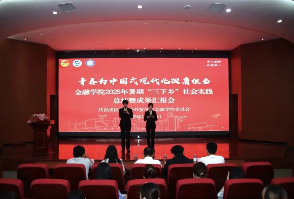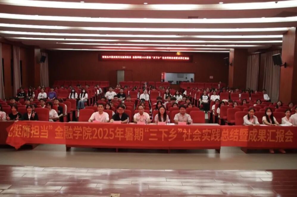 为深入学习宣传贯彻习近平总书记关于青年工作的重要思想,引导和帮助广大青年学生上好与现实相结合的“大思政课”,在社会课堂中“受教育、长才干、作贡献”,10月14 日晚,以“青春为中国式现代化挺膺担当”为主题的金融学院2025年暑期“三下乡”社会实践总结暨成果汇报会在长乐校区学术报告厅顺利举行。学院党委书记、副院长林业铖副教授,学院团委负责人、辅导员、各实践队指导老师、长乐校区各年级学生代表参加汇报会。滨海校区新生通过线上视频方式观看了汇报会。