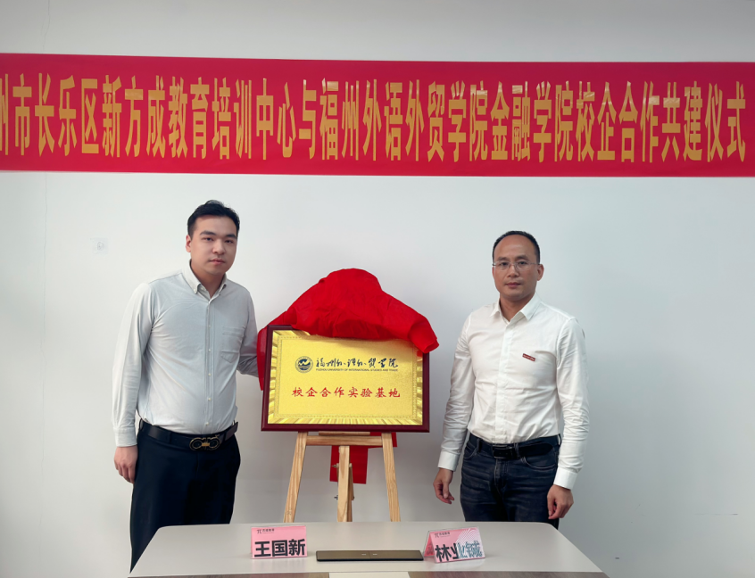 随后,在双方与会人员的共同见证下,金融学院与新方成教育培训中心有限公司,在新方成教育会议室顺利举行校企合作签约暨校企合作实践基地揭牌仪式,此次合作旨在深化产教融合,共育应用型金融人才,标志着双方合作开启了新篇章。