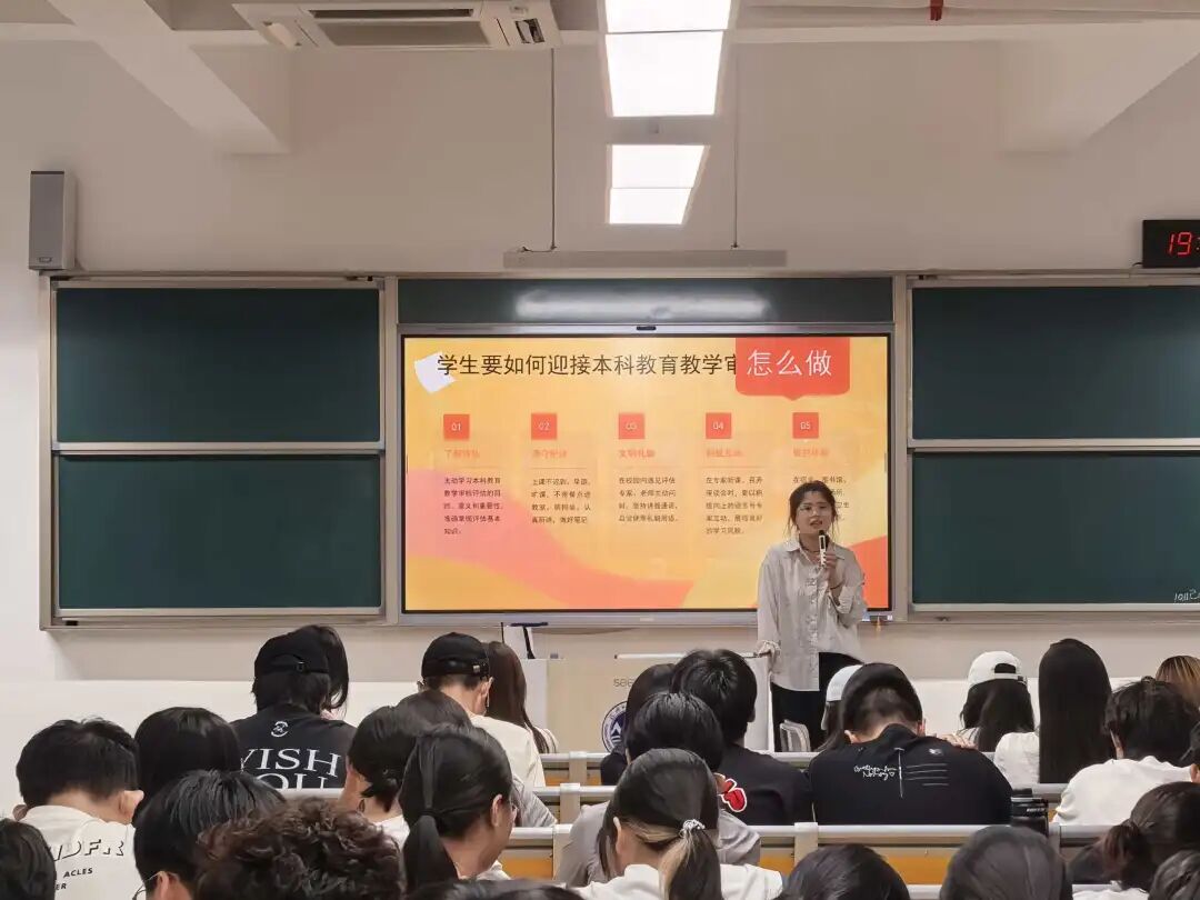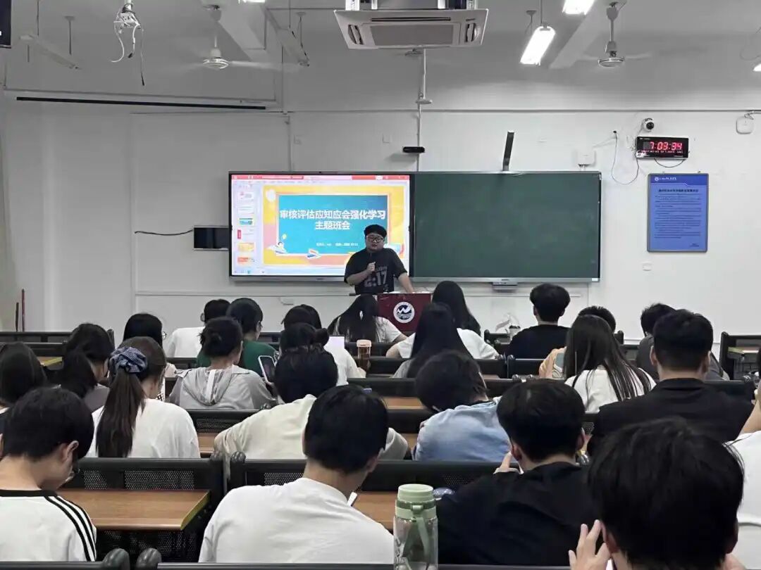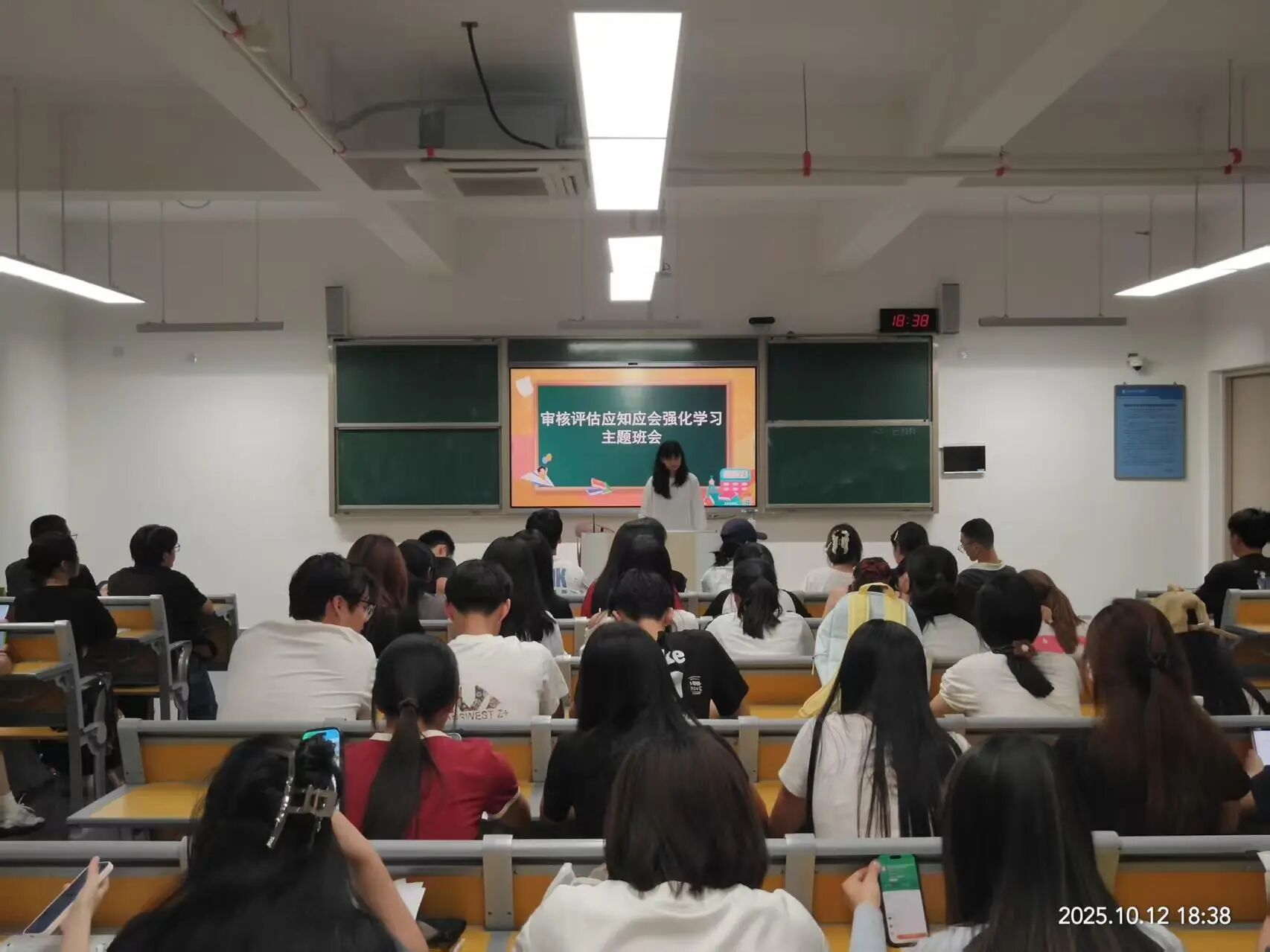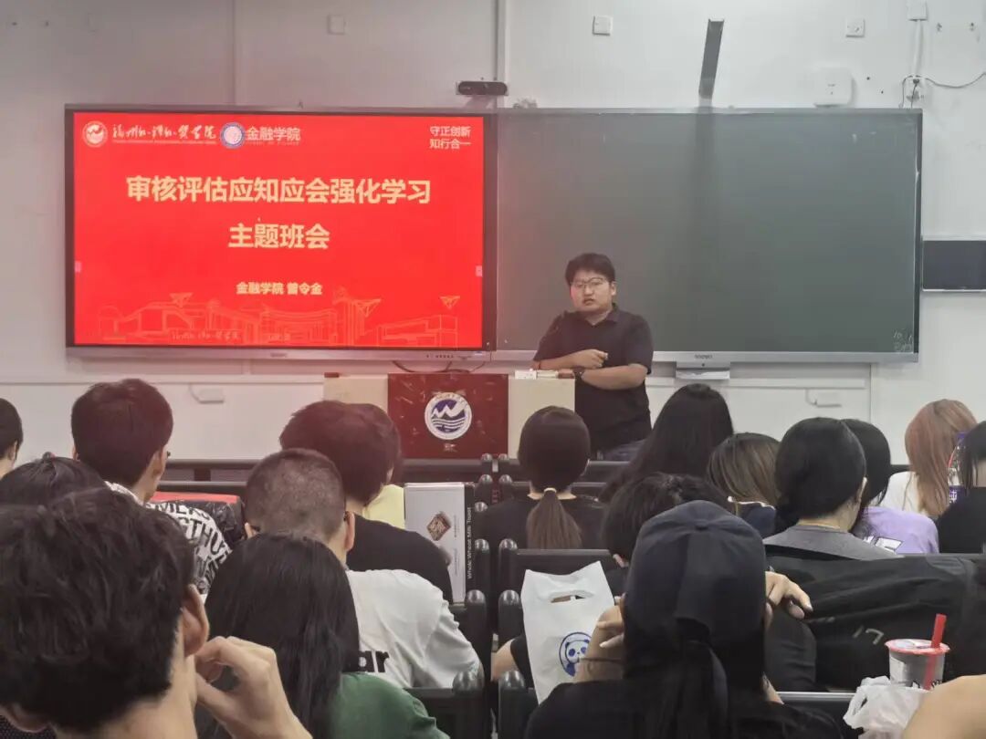 为深入贯彻学校审核评估工作部署,进一步引导学生以高度的责任感和积极主动的态度参与迎评工作,金融学院于 10 月 12 日组织召开了审核评估应知应会强化学习主题年级会,全体在校生积极参与。