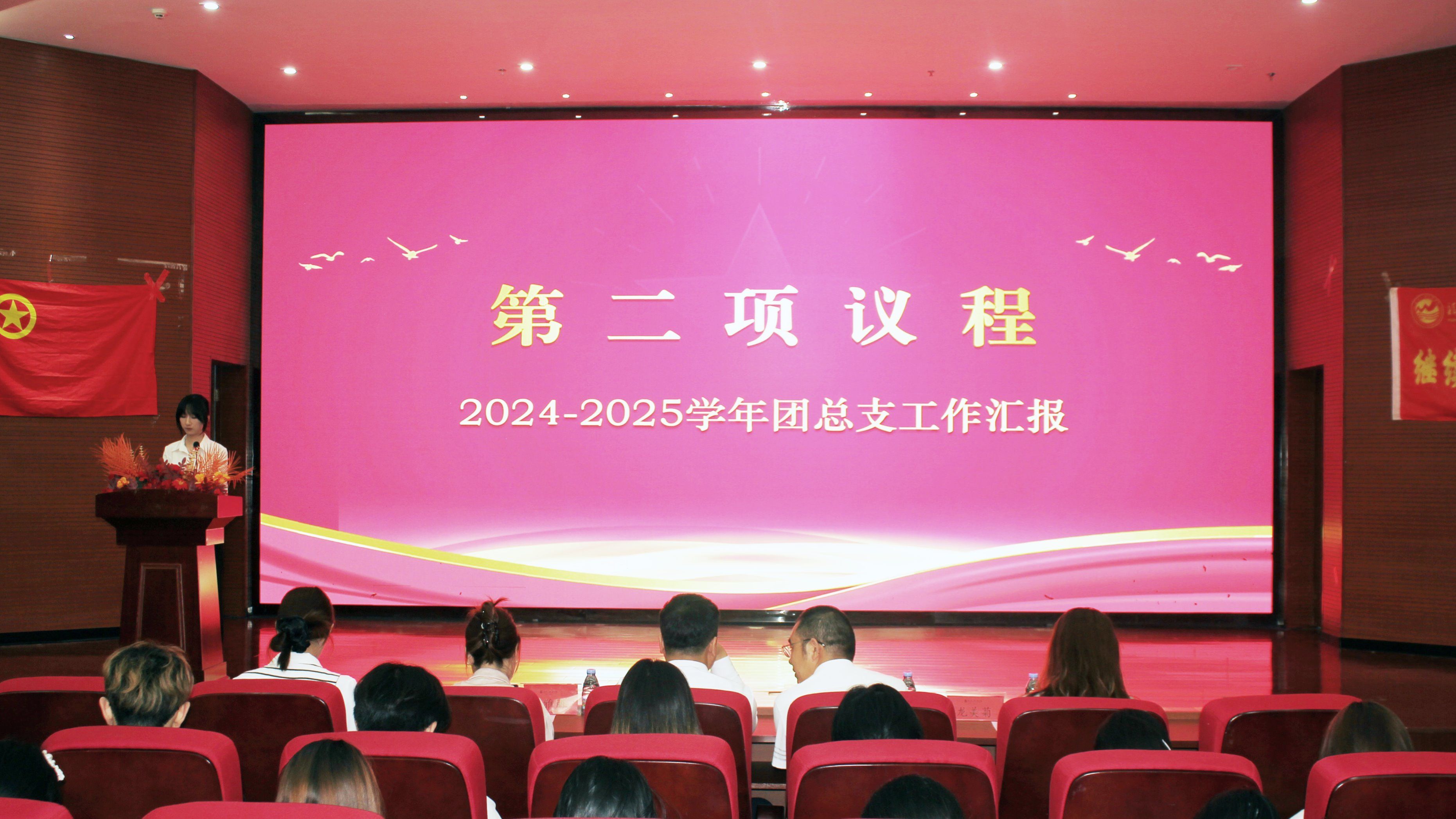 第一届团总支副书记陈莉雯作2024-2025学年团学工作报告,全面回顾思想引领、活动开展、服务同学、队伍建设等方面的显著成效,梳理宝贵经验与改进方向,为新一届工作奠定基础、指明路径。