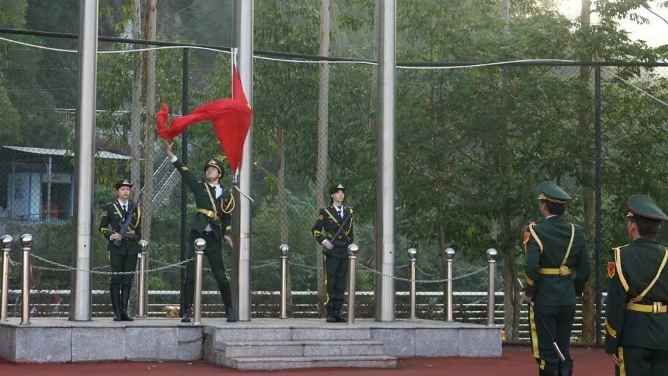 伴随着肃穆的旋律,升旗仪式正式拉开帷幕。全体师生整齐列队,一声令下,主席台下队伍有序转向。护旗手昂首挺胸、步伐铿锵,迈着整齐划一的步伐护送五星红旗入场。激昂的《义勇军进行曲》奏响,鲜艳的五星红旗冉冉升起,全体师生肃立行注目礼,目光追随着国旗,心中满溢对祖国的无限热爱与崇高敬意。现场鸦雀无声,真挚的情感在空气中流淌,激昂的歌声传递着对祖国的美好祝愿与赤诚告白。