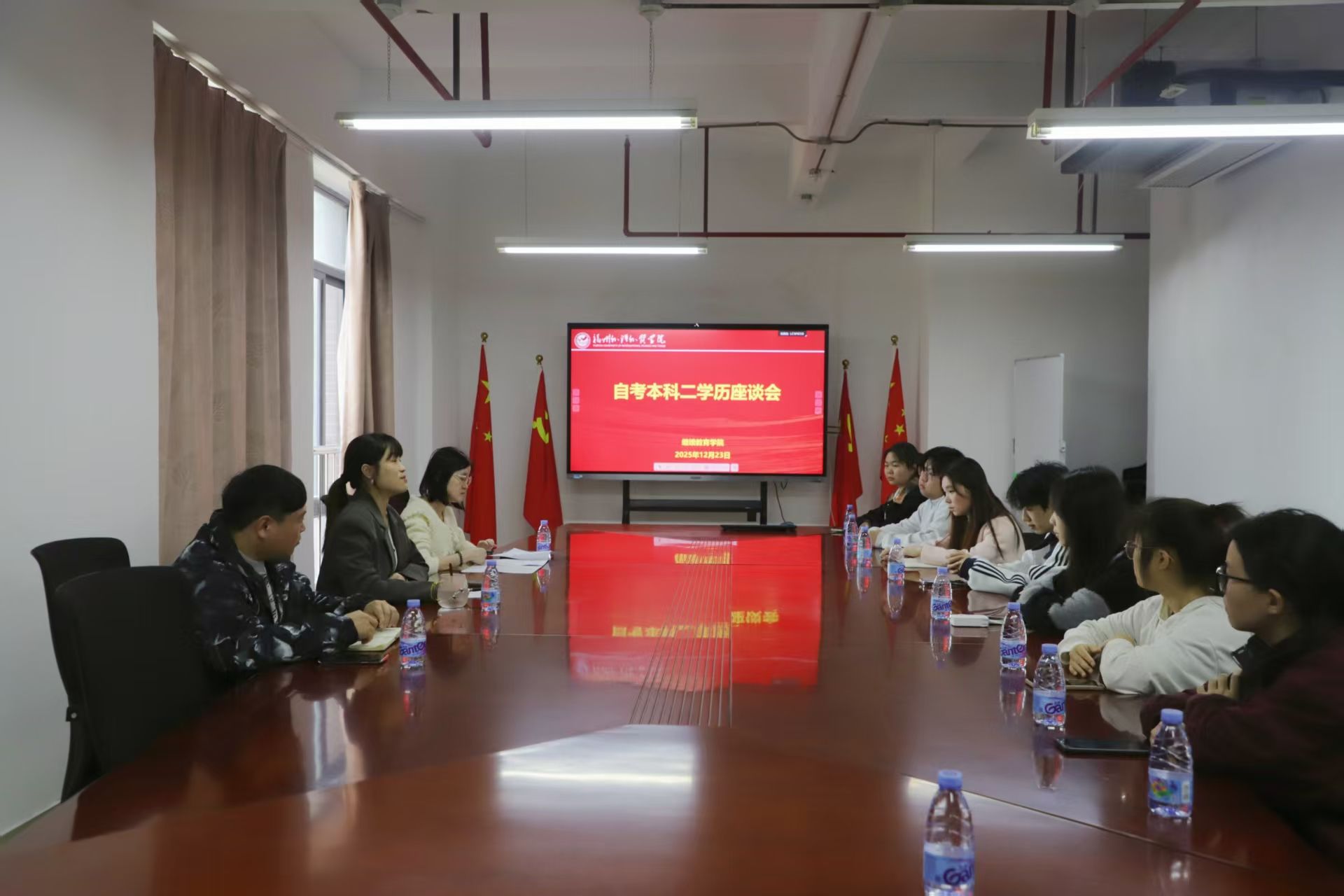 为切实倾听学生心声,精准提升教学与服务质量,促进我校自考本科二学历工作稳步有序发展。12月23日,学院在行政楼1002会议室组织召开自学考试本科二学历学生座谈会,来自不同专业的自学考试本科二学历学生代表齐聚一堂。继续教育学院副院长安卉、二学历班主任刘运筹、郑瑜以及25级二学历学生代表参加了本次座谈会。