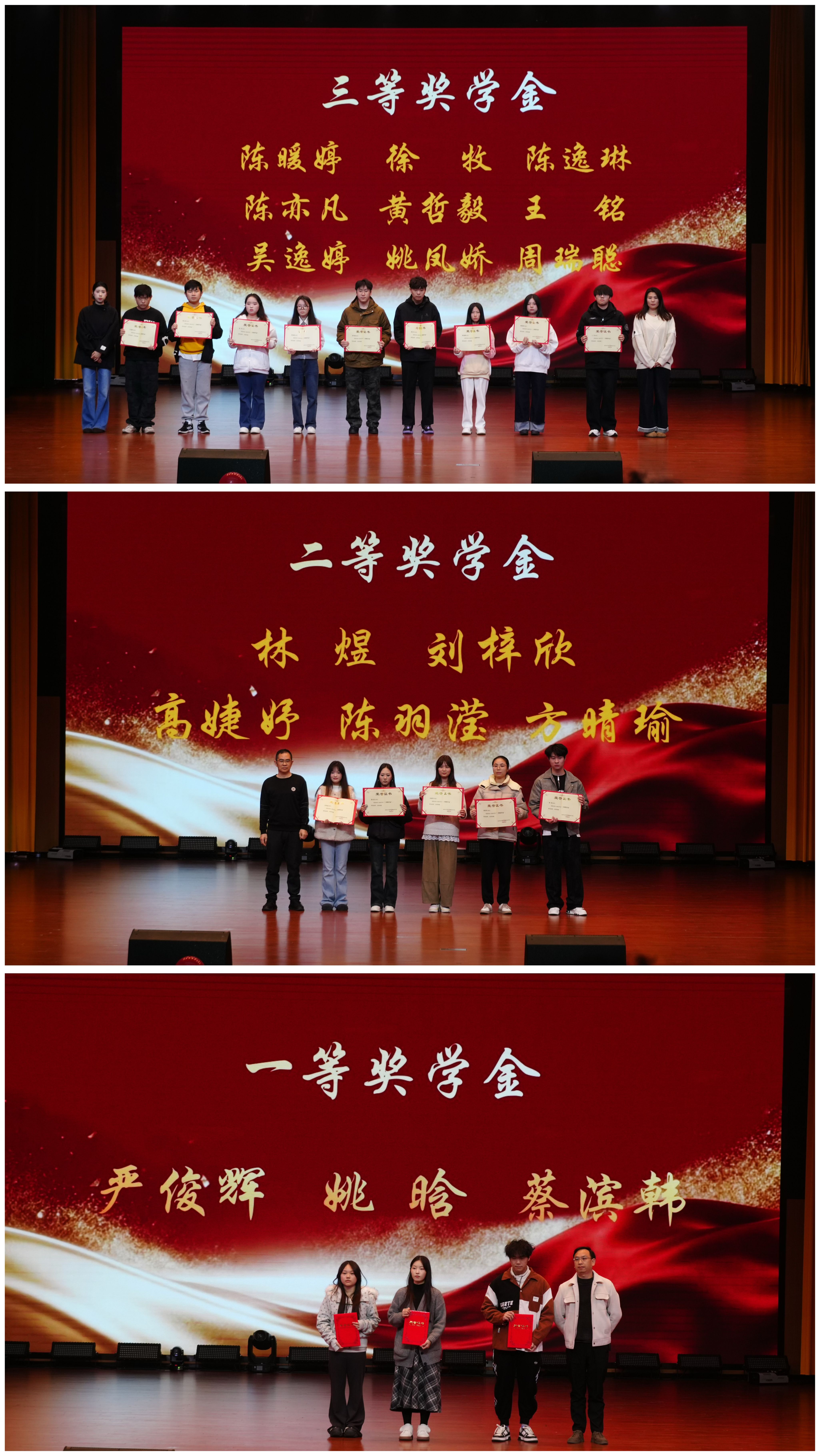 随后,学院对三等奖学金、二等奖学金、一等奖学金获得者颁发荣誉。这份荣誉既是对学子刻苦求学、奋勇争先的嘉奖,也彰显了学院对人才培养的重视与期许,激励全体学子勇攀高峰。
