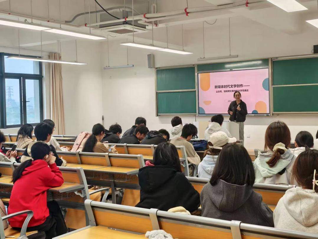 讲座内容兼具理论深度与实践指导性,既能帮助学生理解文学性在新媒体创作中的独特价值,又能为日常公众号运营、短视频脚本撰写等提供实用方法。对新媒体创作感兴趣的同学,能通过此次交流解锁文案创作的新可能!
