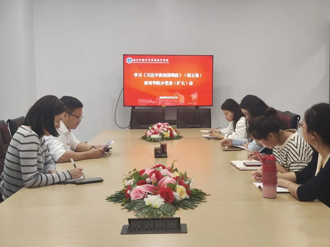 为深入学习贯彻习近平新时代中国特色社会主义思想,深悟其精髓要义,10月21日,教育学院于人文楼4-407会议室召开了《习近平谈治国理政》第五卷专题学习会。学院党委委员、各党支部书记、分团委负责同志参加会议。分党委书记陈铭帅主持会议并领学。