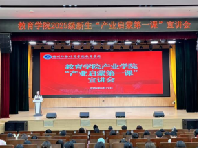 9月17日下午,产业学院面向教育学院2025级全体新生隆重举行“产业启蒙第一课”新生宣讲会。本次活动旨在帮助新生尽早树立产业思维、明确职业方向、规划大学生活,特邀五位来自教育及相关产业一线的资深企业导师进校分享,为同学们带来了一场内容丰富、视角前沿的产业启蒙盛宴。