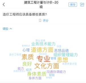 1.以《理想之城》的小视频吸引学生的注意力。《理想之城》讲述的是造价工程师苏筱从一名普通的员工一路奋进成为大公司主任经济师的故事。 2.超星发布讨论话题:《理想之城》中造价工程师苏筱的故事对你有什么启示。(截取词云如下)