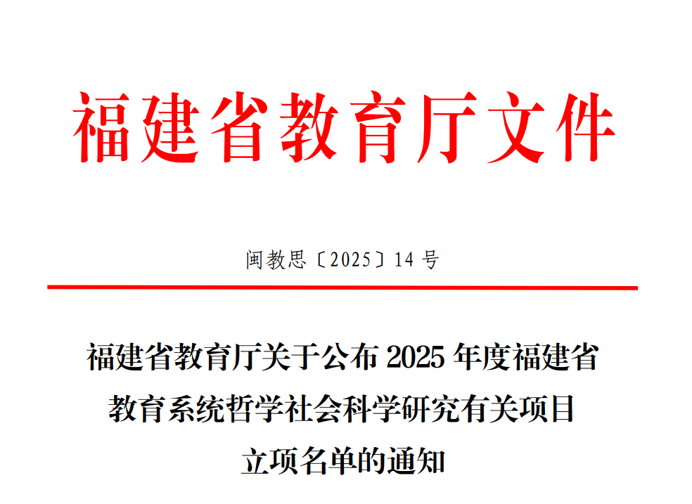 2025年12月30日,福建省教育厅公布2025年度福建省教育系统哲学社会科学研究立项名...