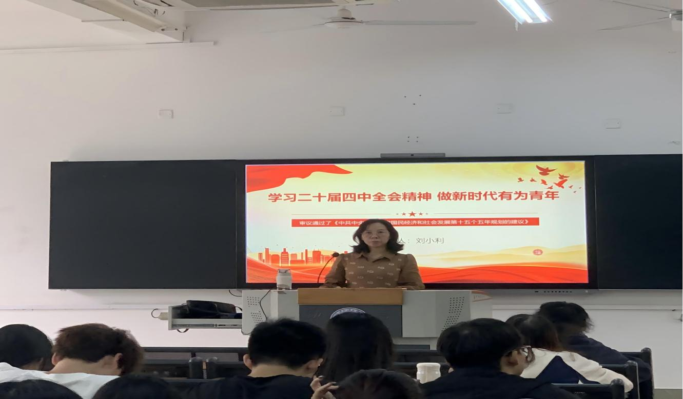 为深入学习贯彻党的二十届四中全会精神,引导青年学子将个人成长融入国家发展大局,11月17日我院教师刘小利面向学生开展以“学习二十届四中全会精神 做新时代有为青年”为主题的讲座。讲座结合“十四五”时期我国经济实力、科技实力、综合国力跃上新台阶的重大成就,重点解读了全会提出的高质量发展、科技自立自强、全面深化改革等核心任务,让学生深刻理解“两个确立”的决定性意义。