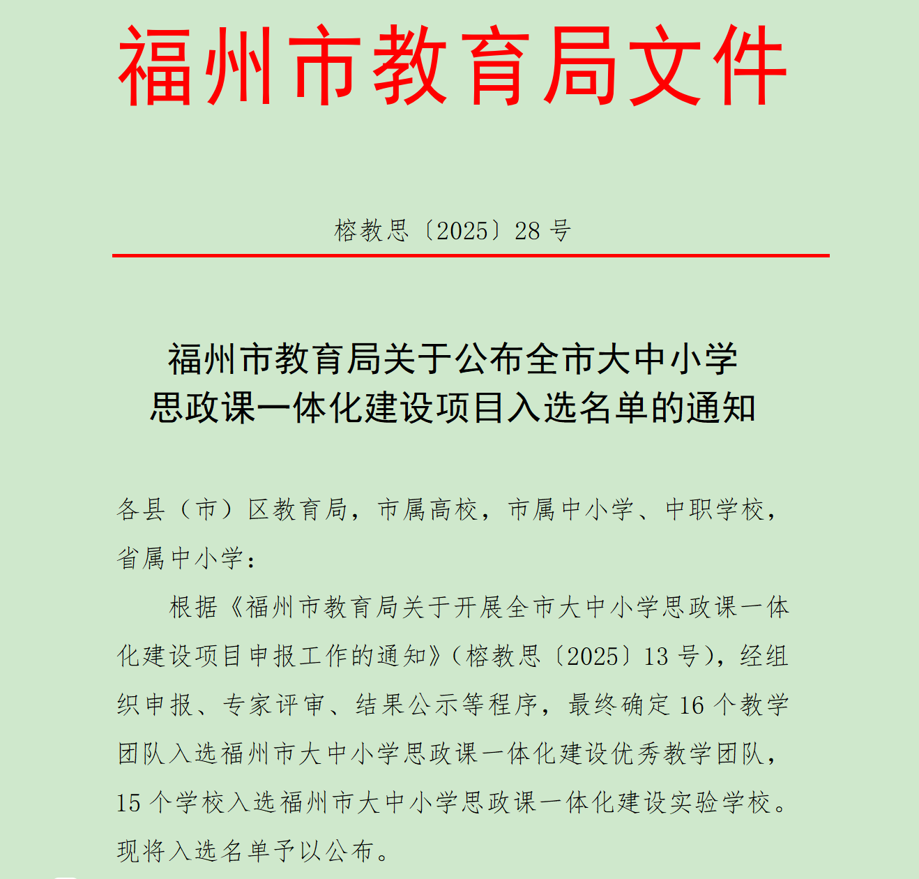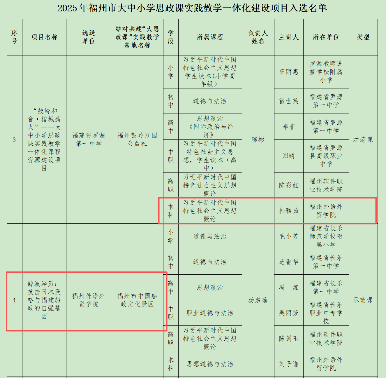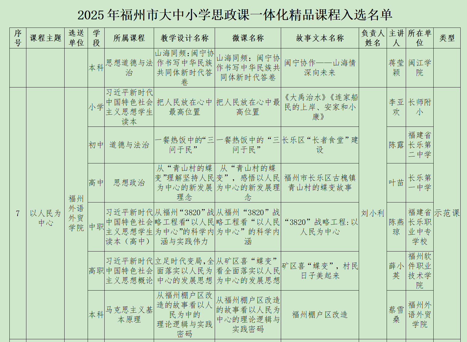 在《福州市大中小学思政课一体化建设项目入选名单》中,我校申报的大中小学思政课一体化建设优秀团队成功入选,标志着我校在贯通学段壁垒、统筹育人资源方面取得了优异的成绩。同时,由我校选送的理论课程 《以人民为中心》 成功跻身福州市大中小学思政课一体化精品课程名单,该课程深刻诠释了党的群众路线与执政理念,为各学段学生理解“人民至上”的核心要义提供了精准而生动的教学范本。