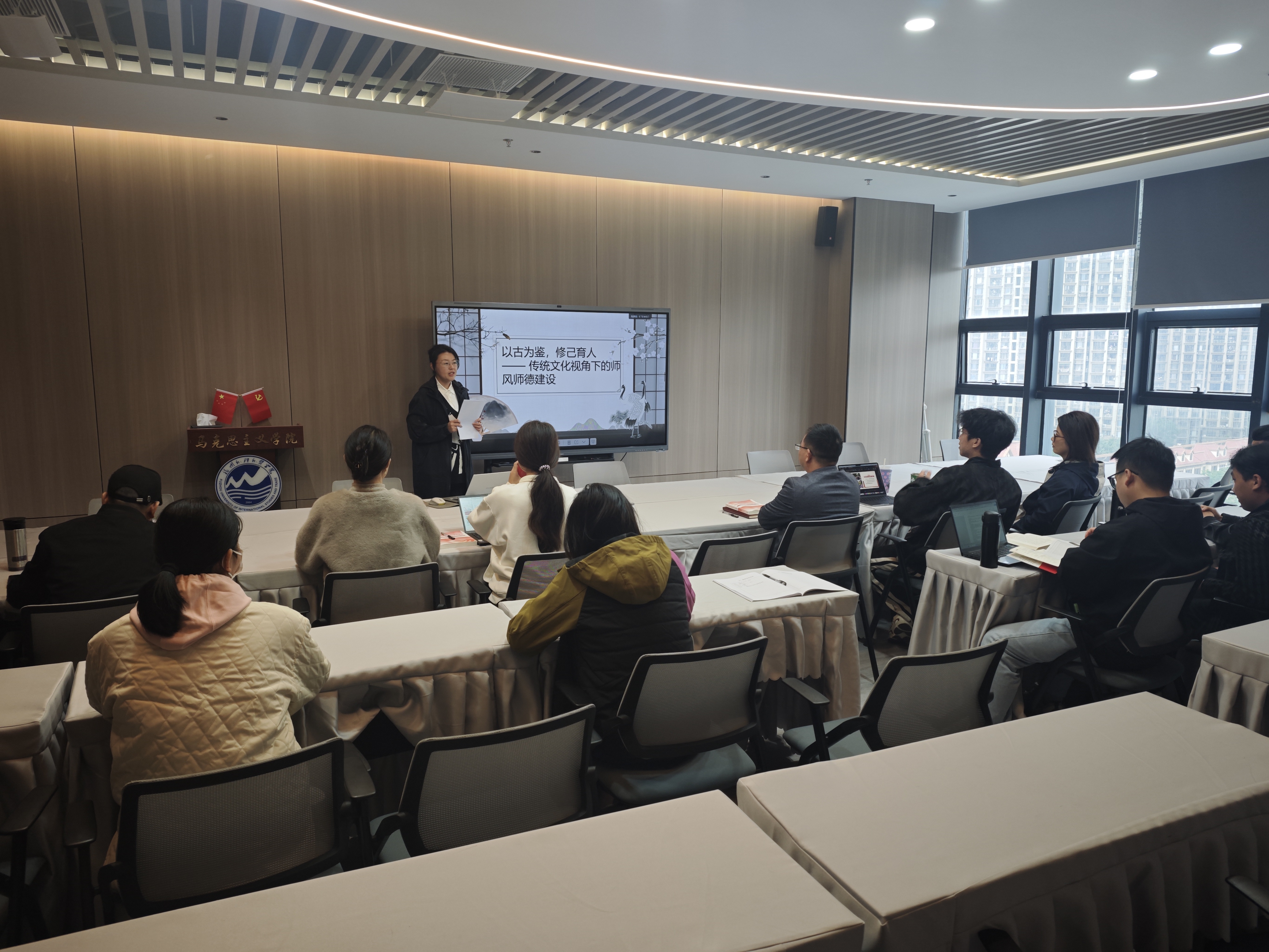 为深入落实立德树人根本任务,传承中华优秀传统文化中的教育智慧,切实加强师风师德建设,11月18日下午,马克思主义中国化研究室纪尚坤老师以“以古为鉴,修己育人——传统文化视角下的师风师德建设”为题,开展专题讲座,与全体同仁共同探讨新时代教师的职业使命与修行之道。