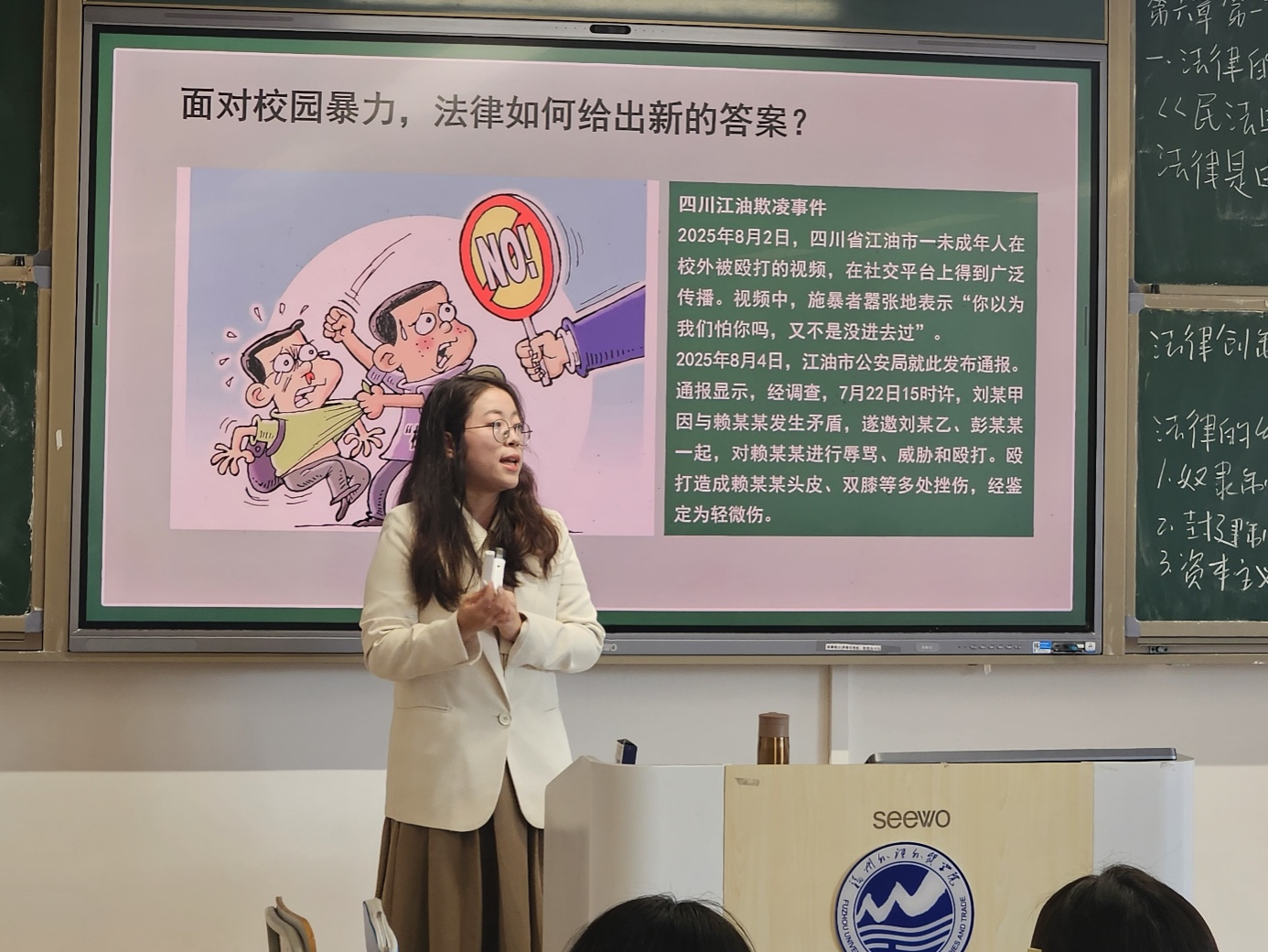 为贯彻立德树人根本任务,助力青年教师提升专业素养与教学质量,德法与纲要教研室于11月25日下午在滨海校区教2-301开展青年教师示范公开课活动,本次公开课由陈如斯老师授课,教研室全体成员参与观摩。